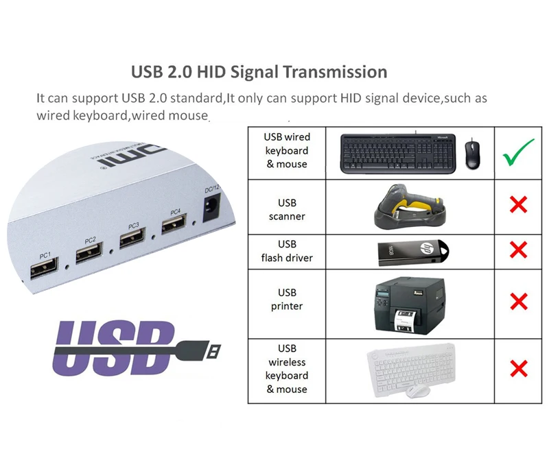 Compatible con teclado y ratón USB, control sincrónico de 4 ordenadores.