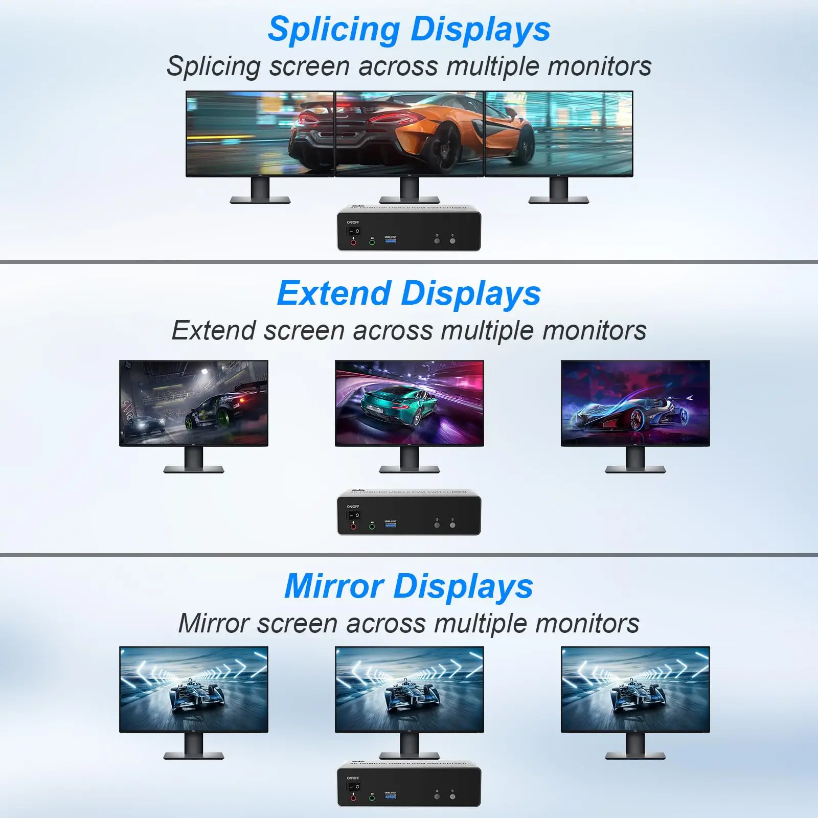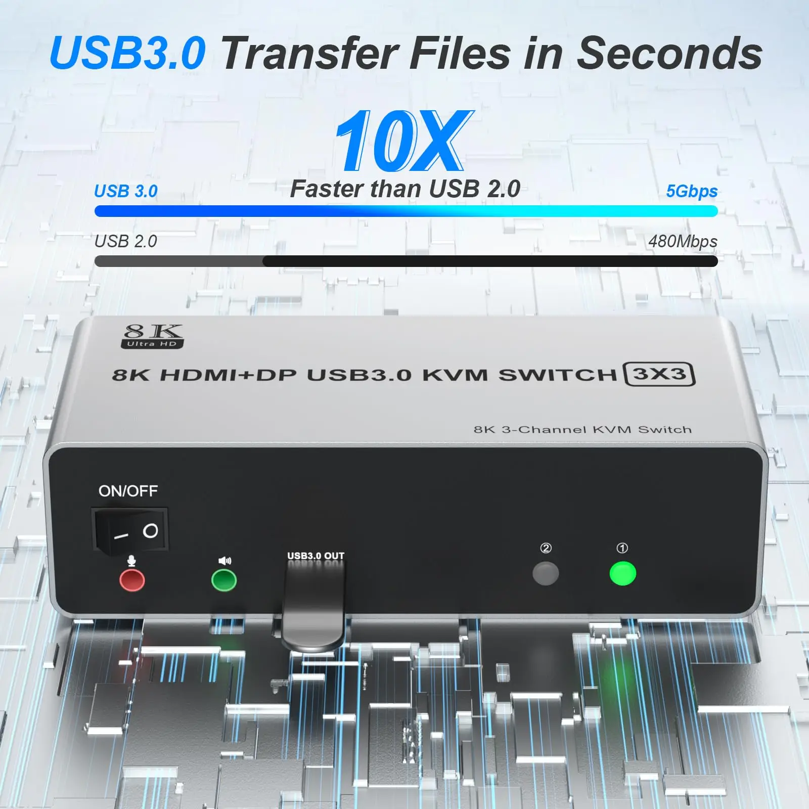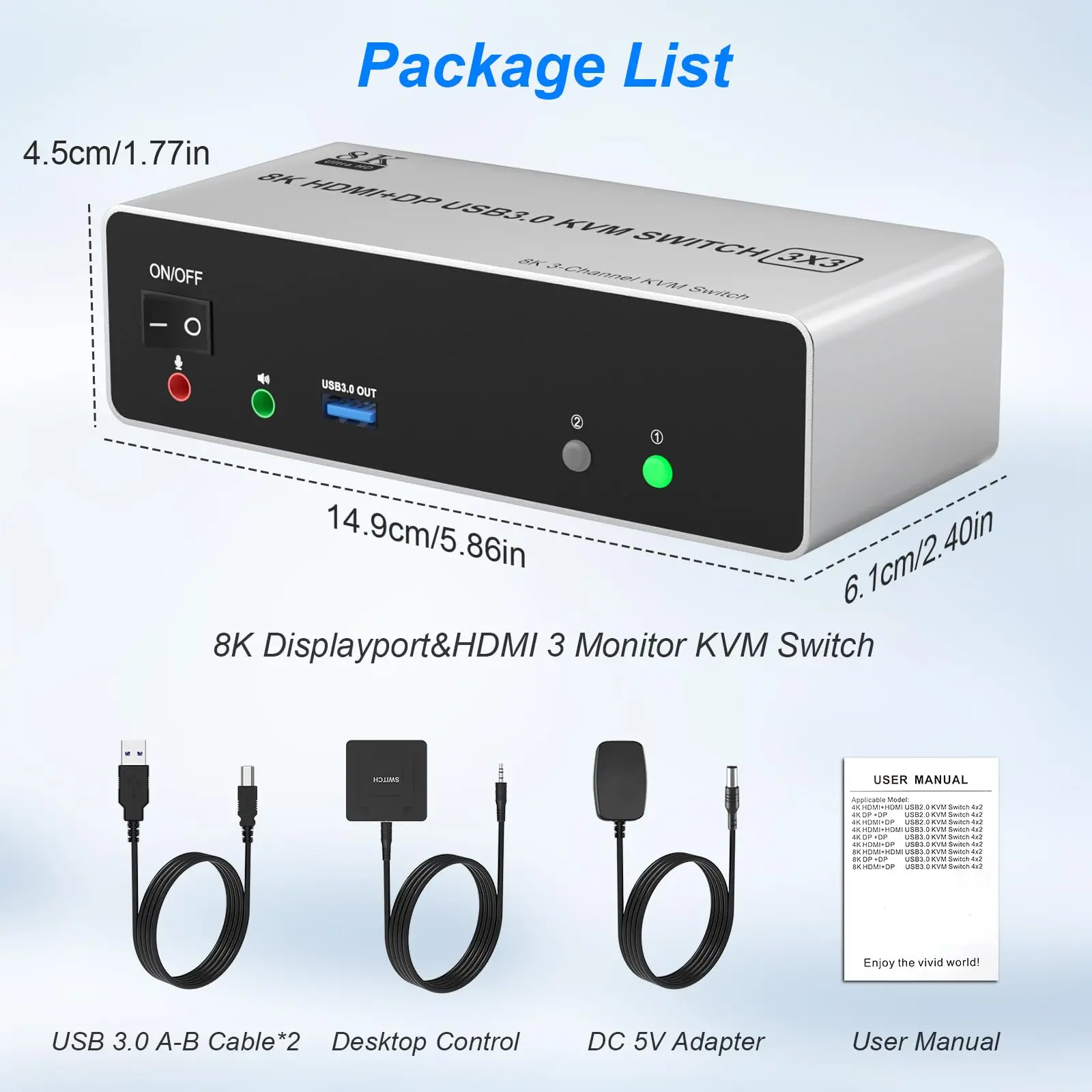 1 interruptor KVM de triple Monitor USB 3,0 de 8K,