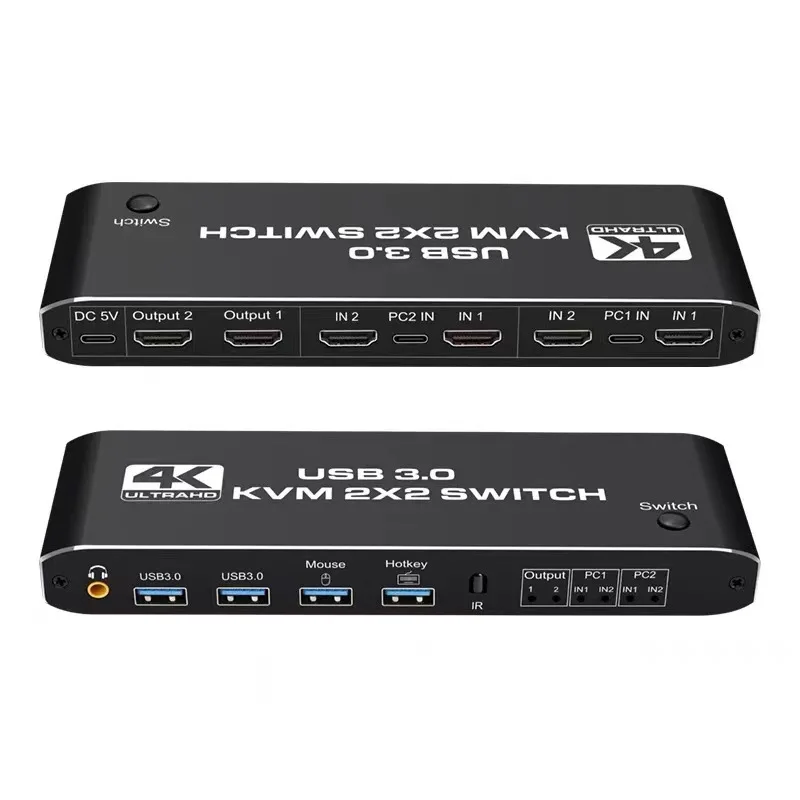 2 In 2 Out 4K USB 3,0 HDMI KVM Switch Box monitor dual para 2 PC Sharing Keyboard Mouse Printer Plug Play Video 2 Display USB Swltch Splitter