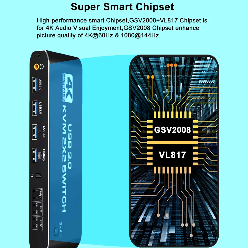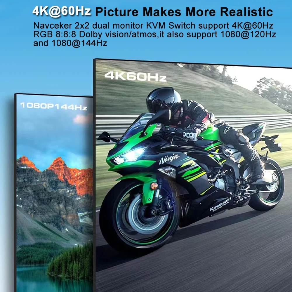 [Disfrute visual UHD 4K]:El conmutador KVM admite HDMI 2,0 y HDCP 2,2 estándar. Soporta una resolución máxima de hasta 4K @ 60Hz,1080 @ 144Hz, también admite una resolución de 1080P @ 120Hz o inferior, hace que la visualización de las imágenes sea más exquisita y realista.