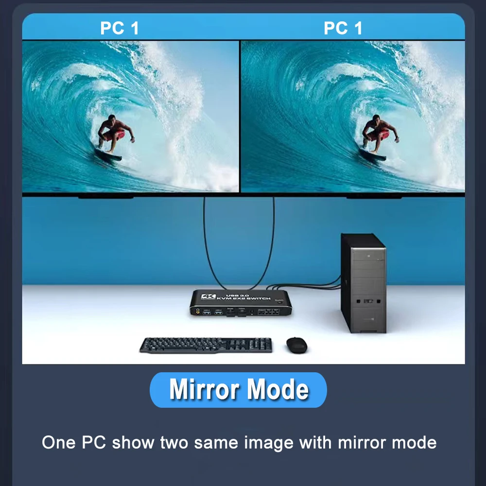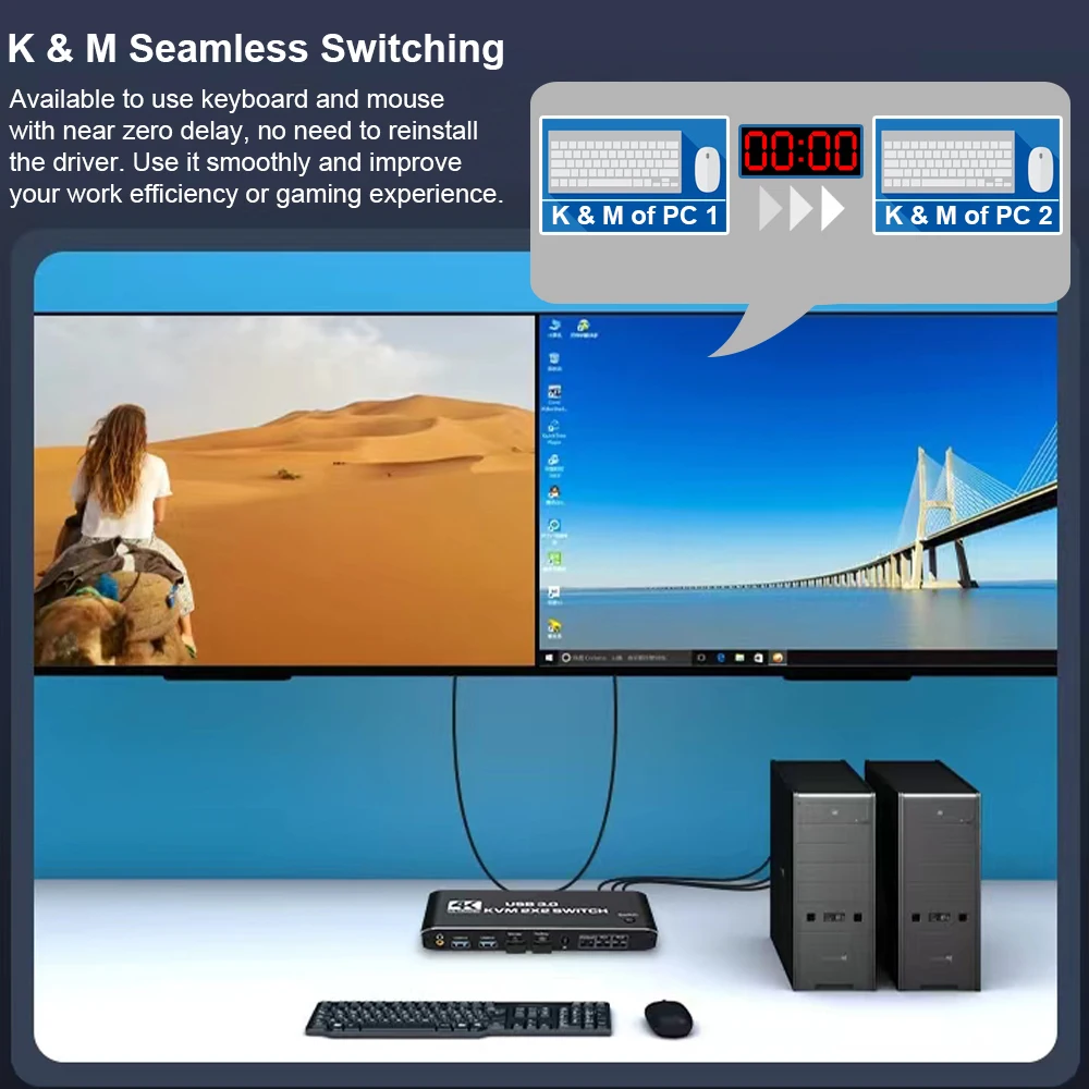 [HDMI KVM USB switch Monitor Dual]:Este conmutador KVM permite controlar 2 ordenadores con un conjunto de controles (teclado y ratón) y dos pantallas de visualización. Realiza 2 entradas y 2 salidas de conmutación síncrona de selección libre. Puede controlar y administrar de forma centralizada el ordenador portátil o la consola de juegos sin tener que moverse de una estación de trabajo a otra.