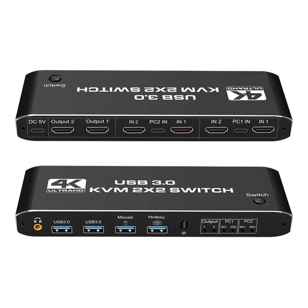 Comprar Interruptor KVM de doble Monitor, conmutador 2 en 2, 4K, 60Hz, pantalla extendida, USB, para 2 ordenadores, compartir 2 monitores