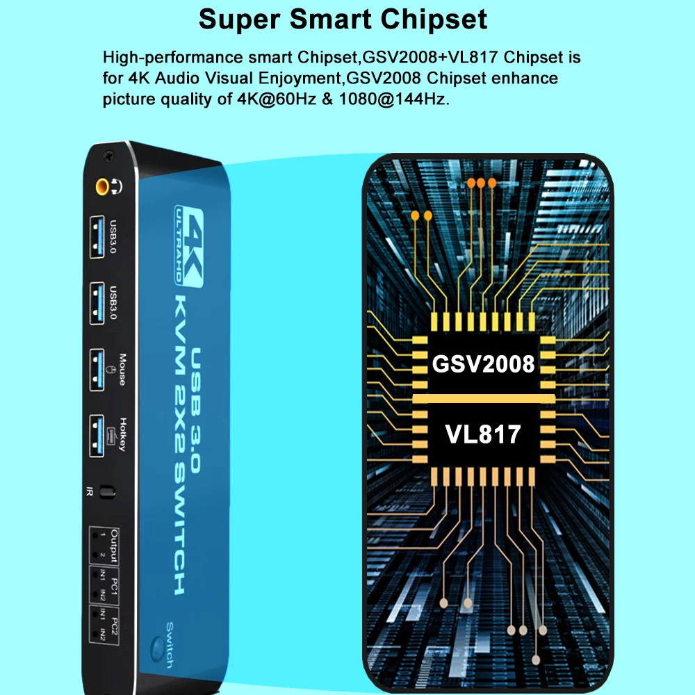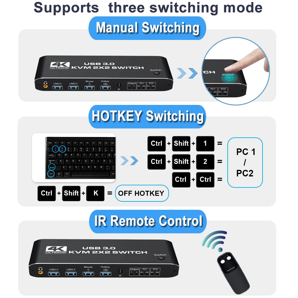 3. Este es un conmutador de monitor dual HDMI KVM, no es una matriz KVM HDMI 4X2.