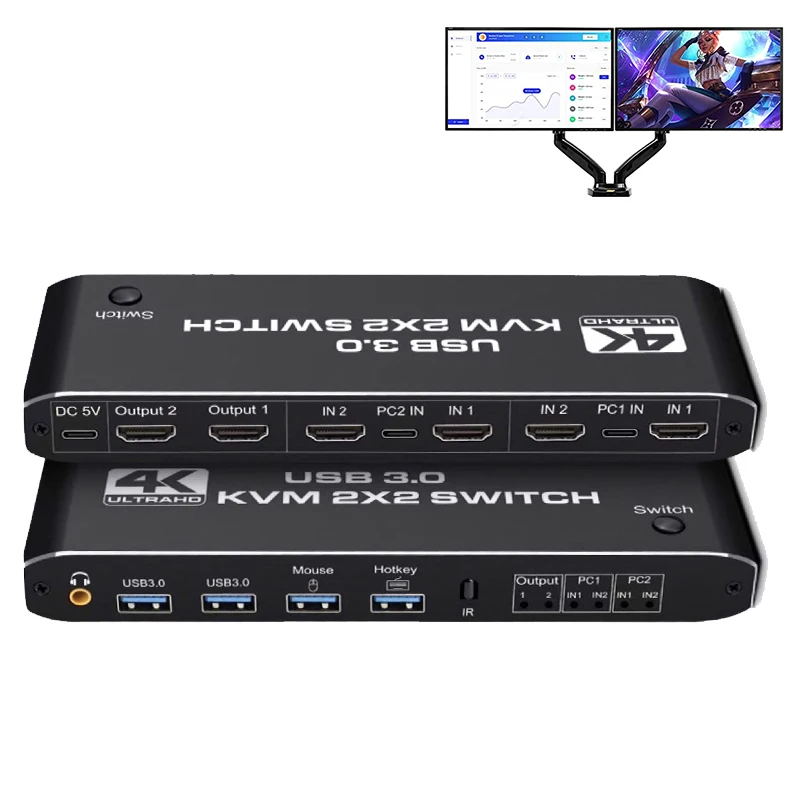 2 In 2 Out 4K USB 3,0 HDMI KVM Switch Box Monitor dual para 2 PC Sharing Keyboard Mouse Printer Plug Play Video 2 Display USB Swltch Splitter