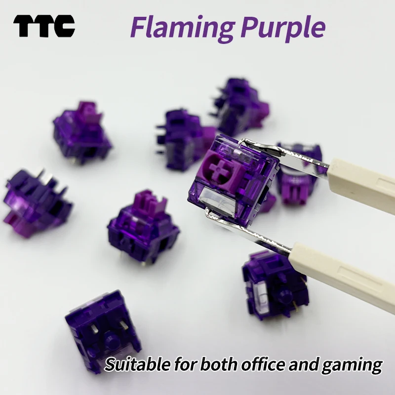 Comprar Interruptor de llave púrpura llameante TTC, interruptor lineal V2, 42g, 3 pines, para jugadores de oficina, teclado mecánico deportivo electrónico, interruptores lubricados