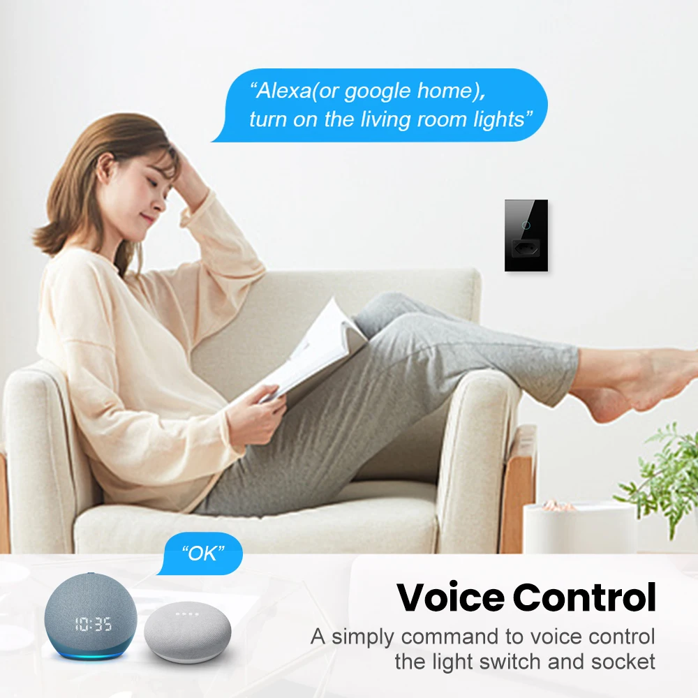 Comprar Interruptor de luz inteligente de Brasil, enchufe de pared con Wifi, enchufe con Sensor táctil de 1/2 entradas, funciona con Smart Life, Alexa y Google Home, Tuya