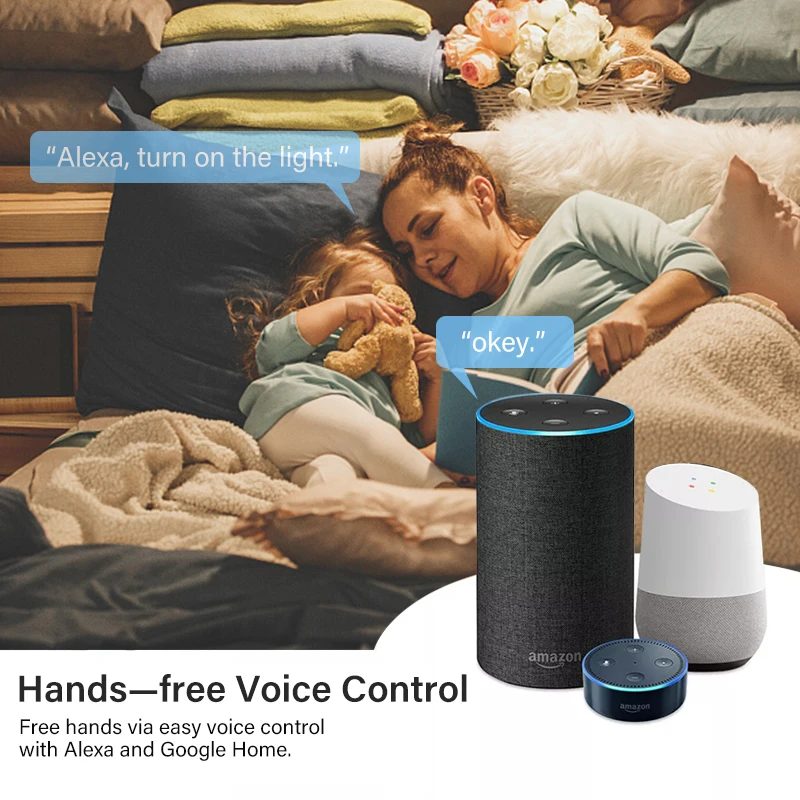 1. Control por voz: una vez que tenga este interruptor, puede conectarlo con Amazon Alexa(Amazon echo/dot/tap) o con el asistente de control por voz.