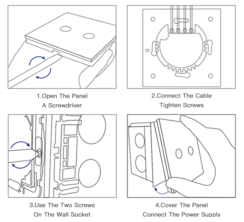 NOTA (1):Un interruptor táctil normal solo puede funcionar con otro interruptor táctil y no funciona con interruptores mecánicos.Un interruptor táctil de 2 vías Bseed solo se puede conectar con otro interruptor táctil de 2-3 vías Bseed.Un interruptor atenuador táctil debe conectarse a otro interruptor atenuador táctil.NOTA (2):Tienes que cortar la energía y durante la instalación.