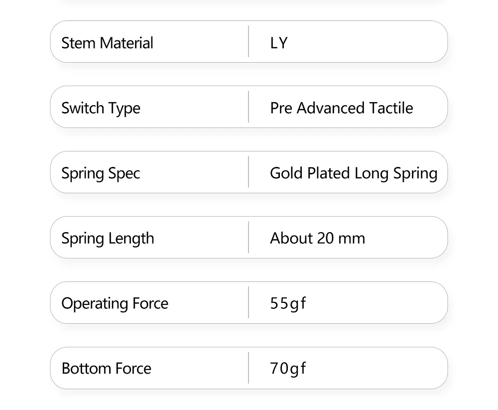 Interruptor de ojo oscuro RGB SMD, interruptores táctiles preavanzados para teclado mecánico, vástago mx, 5 pines, resorte chapado en oro LY PA12 UPE PC, 60M