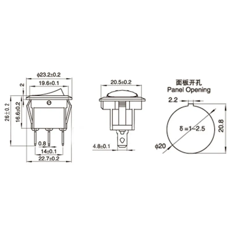 Interruptor de Palanca de 3 Pines, Luz LED de Punto Redondo, Interruptor de Botón de Encendido y Apagado para Coche, Camioneta de Tablero, CA, CA, 125V, CC, 12V, 250V