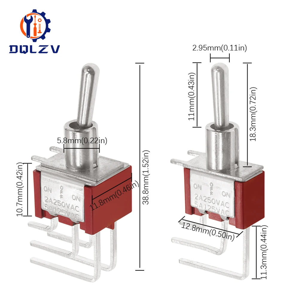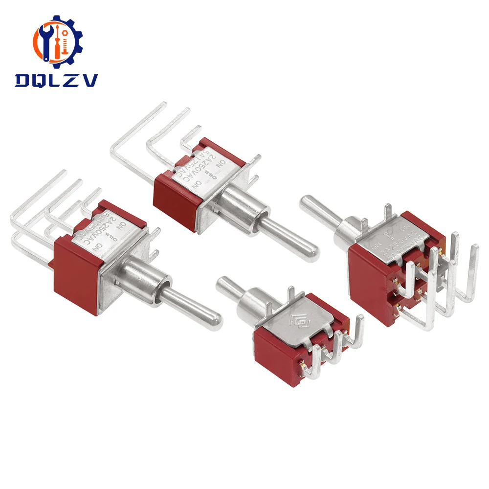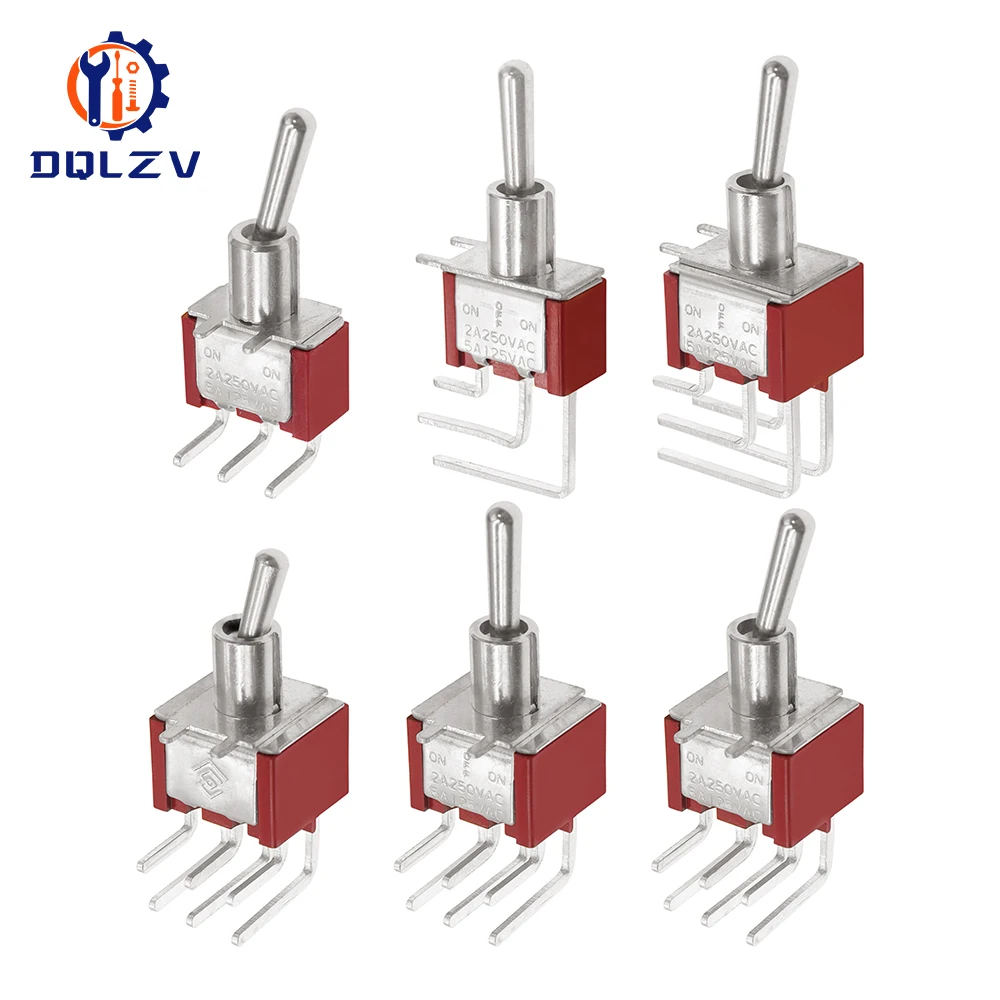 Interruptor de palanca de 6MM, interruptor doblado 2/3/10A 125/250V AC, segunda marcha, tercera marcha, interruptor basculante de curva lateral de 3/6 pines