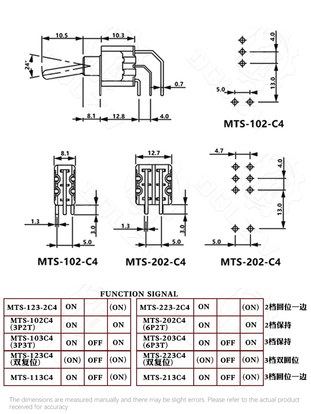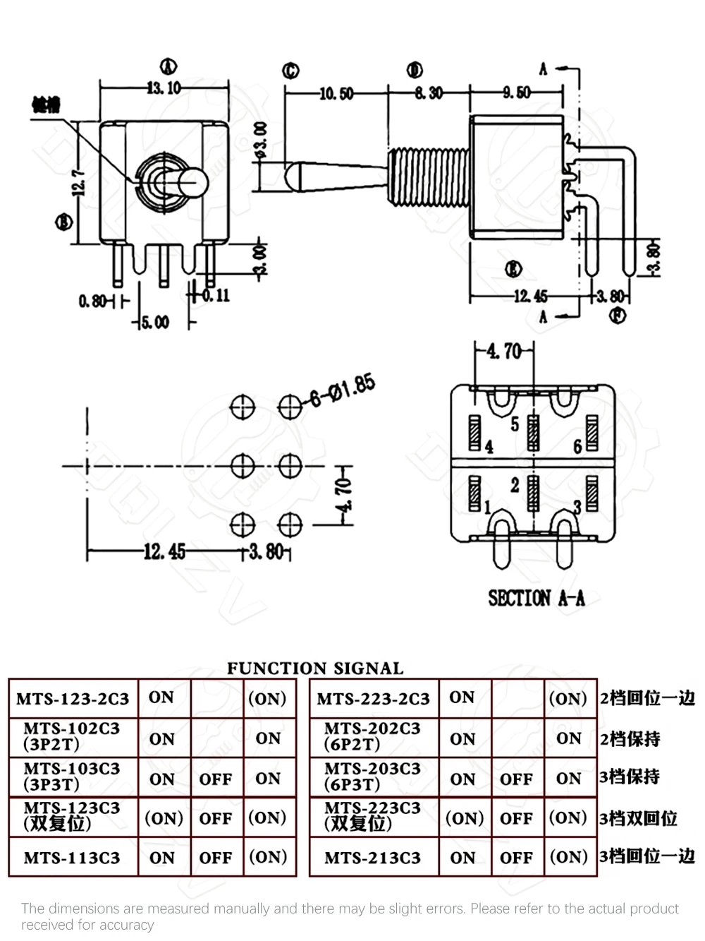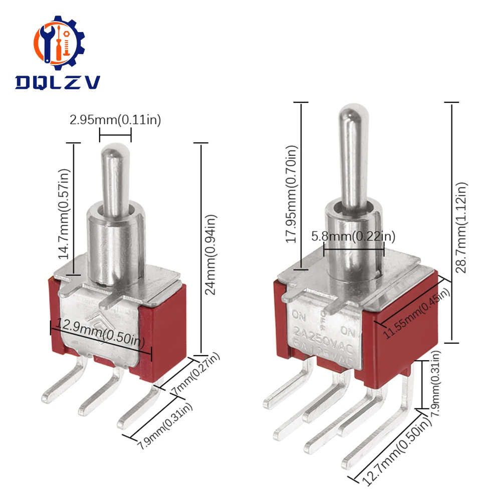 Interruptor de palanca de 6MM, interruptor doblado 2/3/10A 125/250V AC, segunda marcha, tercera marcha, interruptor basculante de curva lateral de 3/6 pines