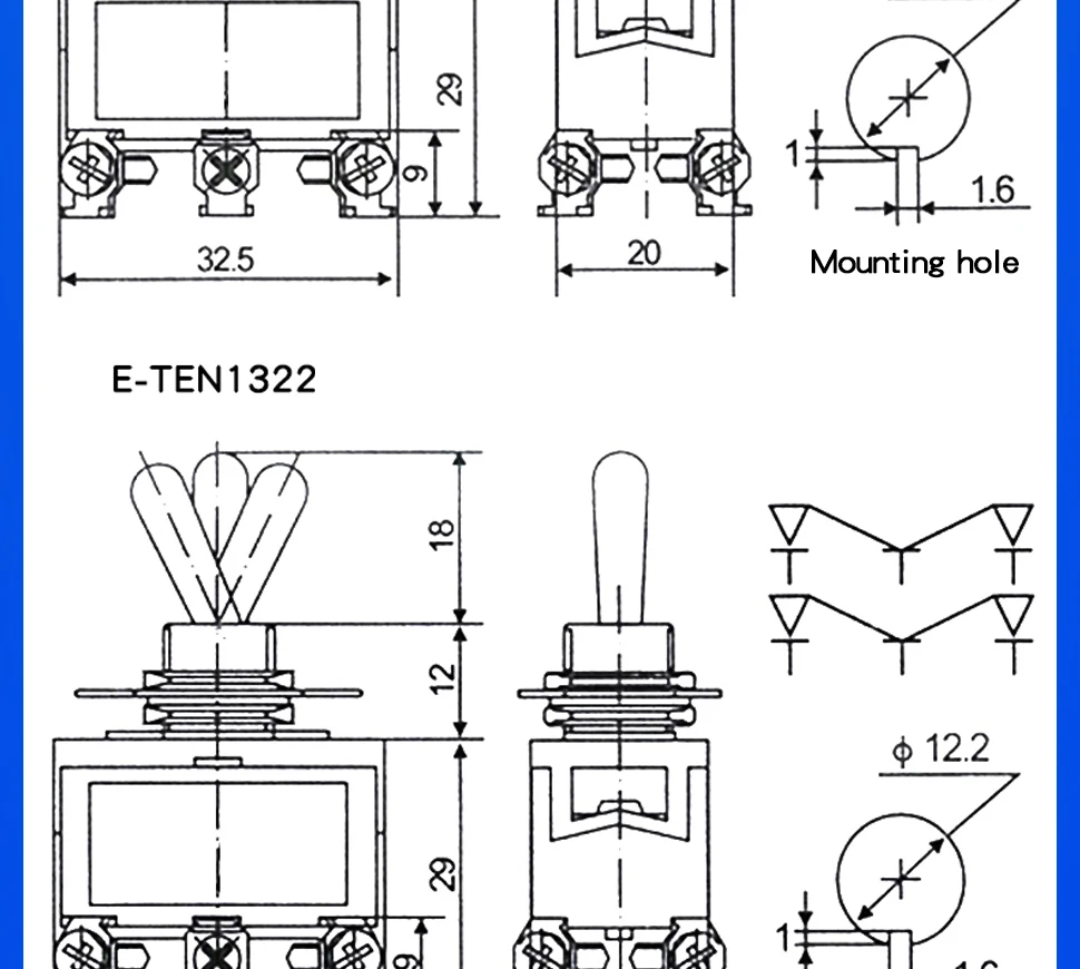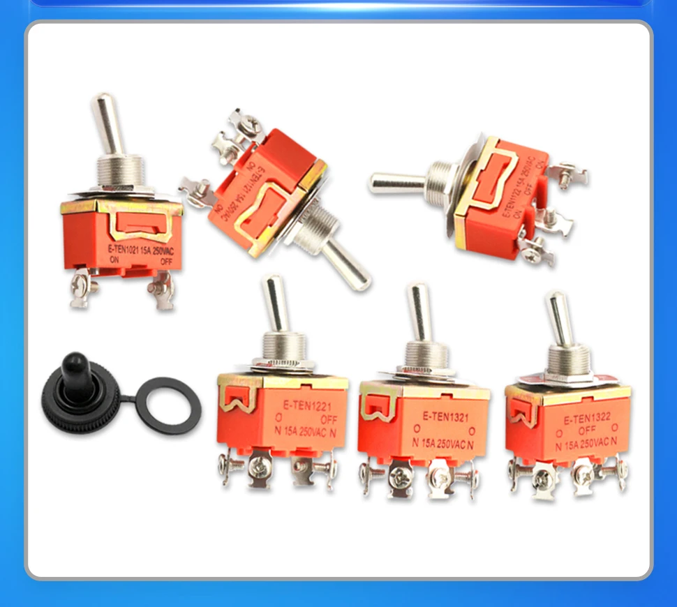 Interruptor de palanca, interruptores basculantes autoblocantes, tapa impermeable, E-TEN1021, E-TEN1121, E-TEN1122, E-TEN1221, E-TEN1321