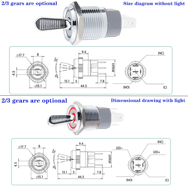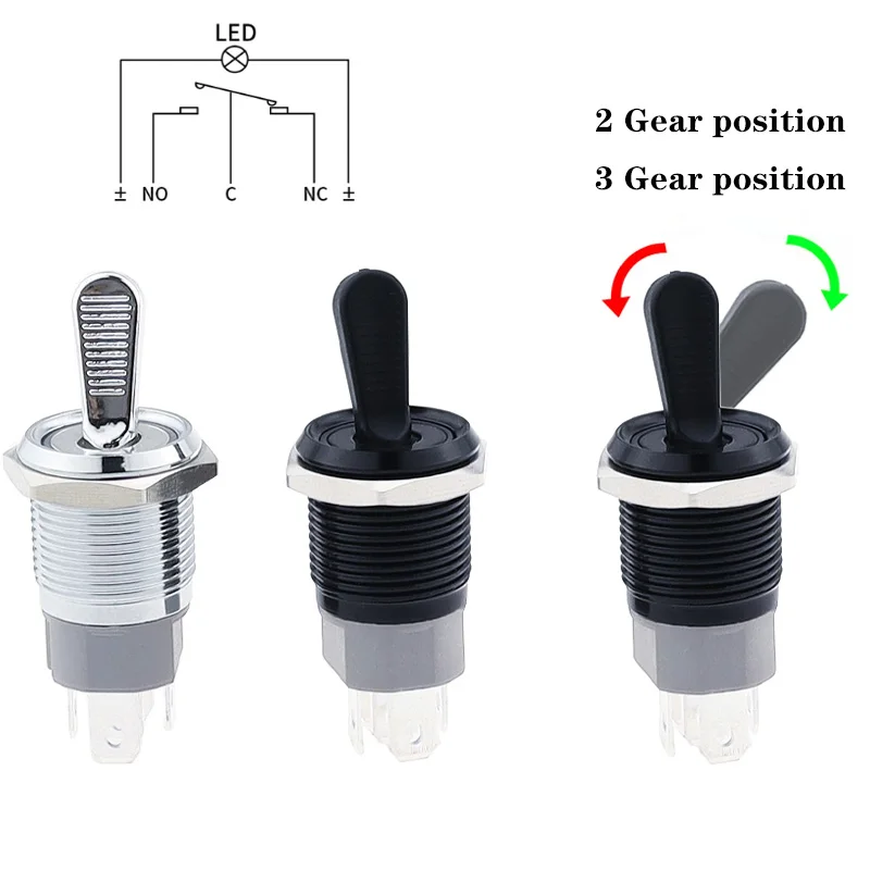 16MM Metal Toggle Switch Waterproof LED Light Self-locking 2 Position On Off Micro Button Switch 1NO1NC 15A 12V 220V 3pin/5pin