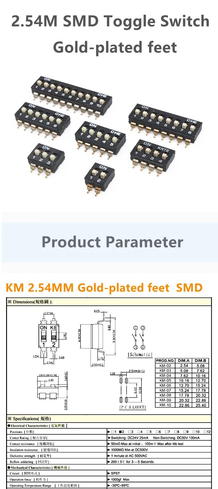 Comprar Interruptor de palanca de parche SMD de 2,54 MM, interruptor de código SMD de paso 1P/2/3/4/5/6/8/10Pin, posición de codificación, 5 piezas lote