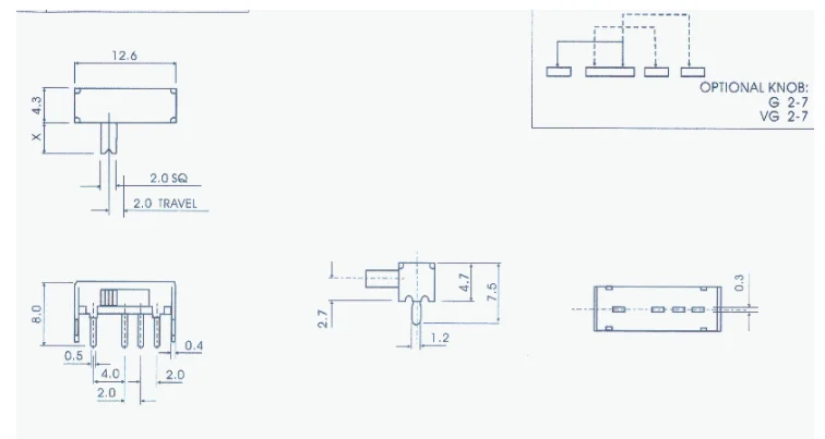 Comprar Interruptor de palanca SK13D07 de 10 piezas, 4 pines, 1P3T, mango alto de 4MM, paso de 2,0 MM, Interruptores deslizantes de ángulo recto, SK13D07VG4