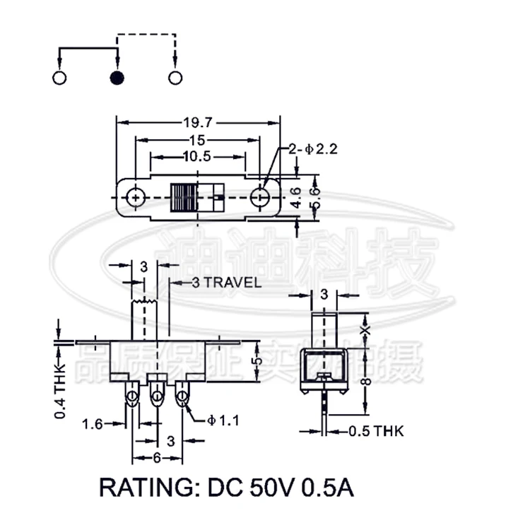 50 SS12F15 SS12F15VG4 Interruptor de palanca 3PIN 1P2T Mango de interruptor deslizante Alto 4mm