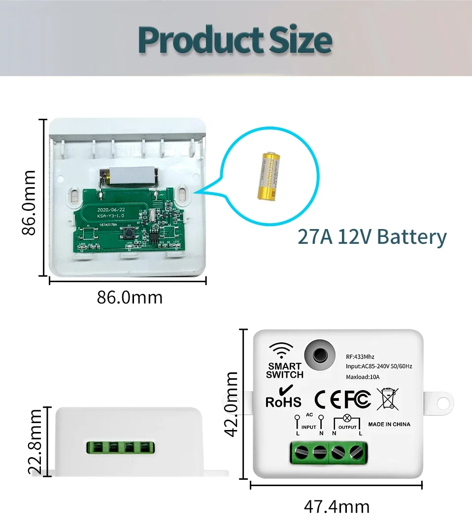 3. Es un panel de pared 86 que se puede pegar en cualquier lugar. Es un chip IC de transmisor de código de aprendizaje EV1527. Se puede aprender en la mayoría de los receptores de código de aprendizaje.