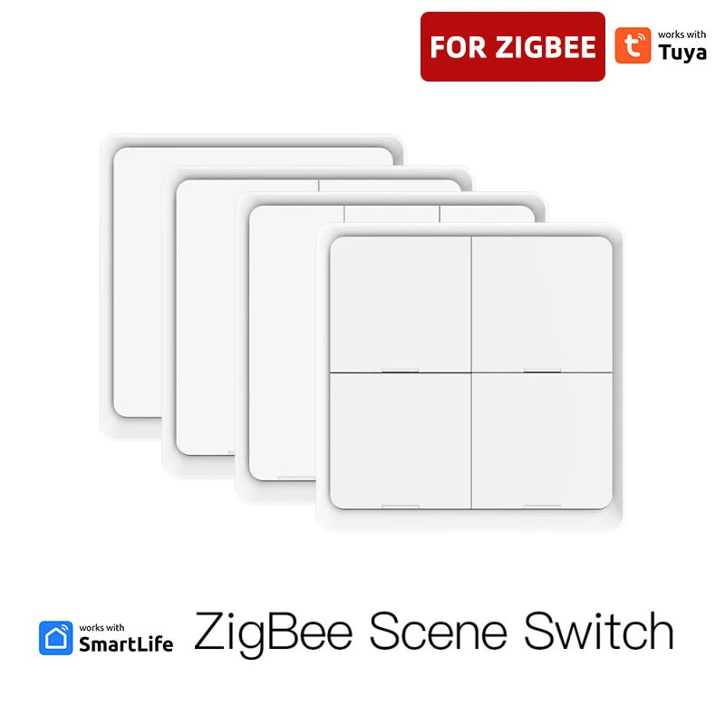 1-Tuya interruptor de pared Smart Home inalámbrico pegatina gratis Panel de 4 vías Botón de escena funciona con Alexa Home Hub Need