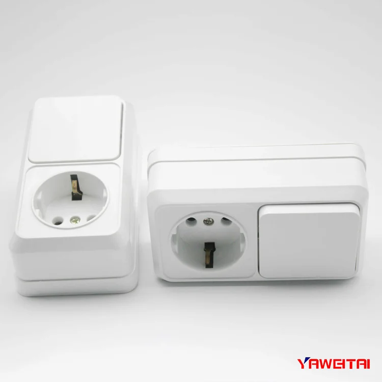 Comprar Interruptor de pared tipo superficie modelo Horizontal con enchufe Schuko, interruptor de pared europeo + enchufe con conexión a tierra