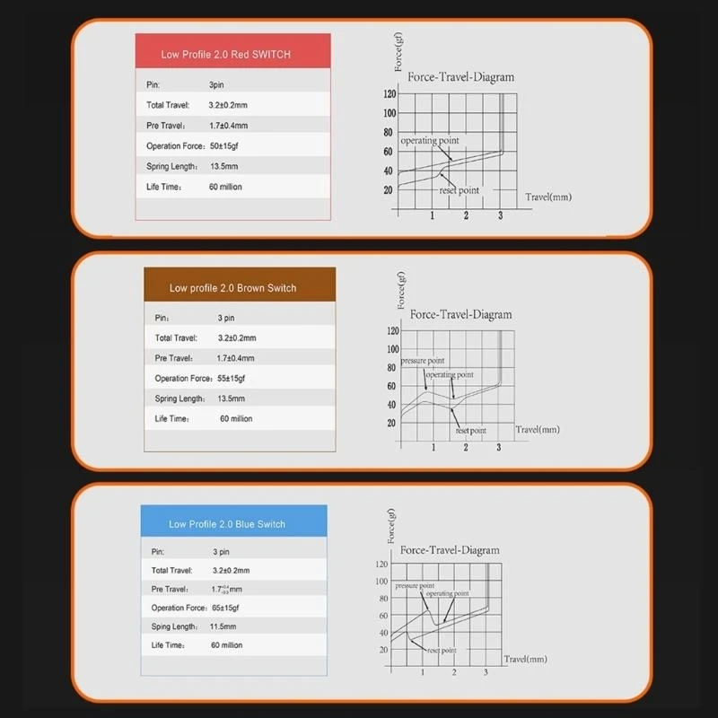 Especificaciones:Tipos: interruptor azul bajo 2.0/interruptor marrón bajo 2.0/interruptor rojo bajo 2.0