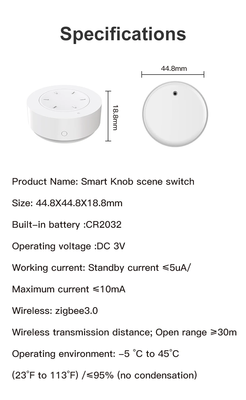 1. Dispositivo dos en uno para escena inalámbrica e interruptor de atenuación, puede crear varias escenas inteligentes para sus dispositivos inteligentes Tuya en la aplicación Smart Life; toca para ejecutar para obtener otro control más fácil para todos los dispositivos inteligentes tuya con operaciones simples en el interruptor.