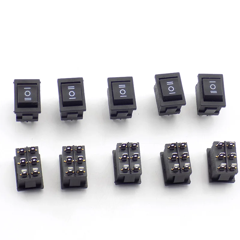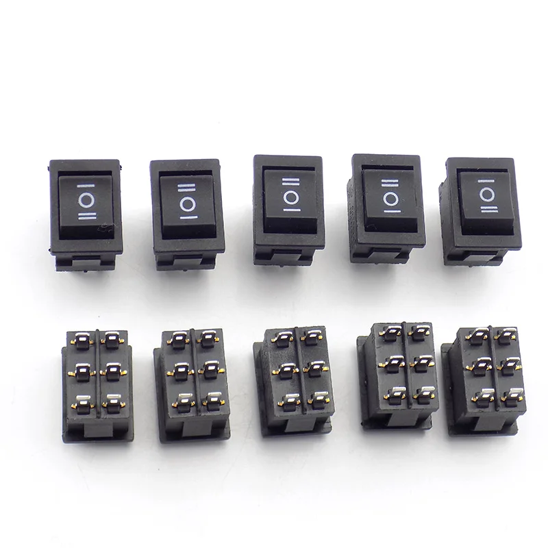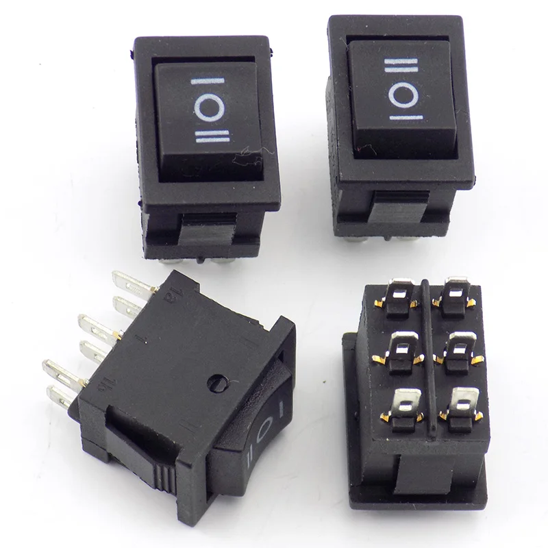 Kcd1-203 Boat Switch Power Switch Black 6-pin 3-speed 21*15 Boat Switch Used For Car, Motorbike, Water Dispenser And So On.