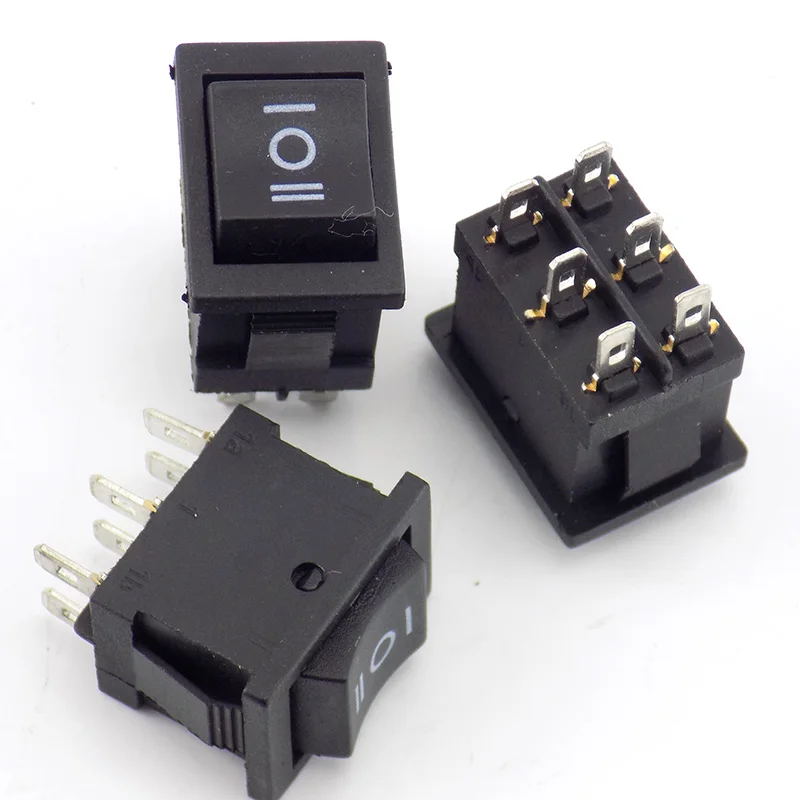 Kcd1-203 Boat Switch Power Switch Black 6-pin 3-speed 21*15 Boat Switch Used For Car, Motorbike, Water Dispenser And So On.
