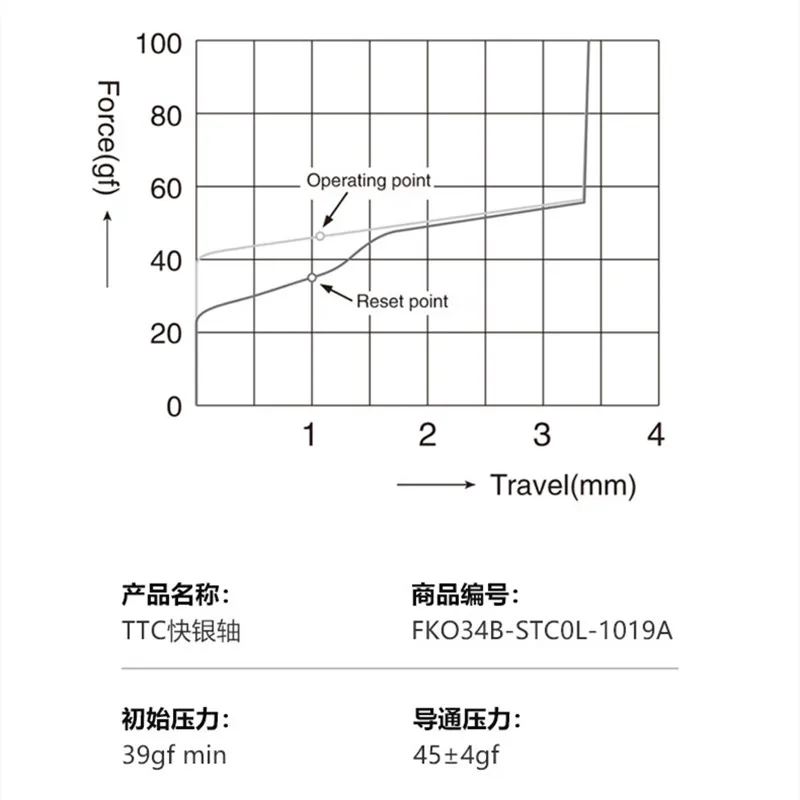 Interruptor plateado de velocidad TTC, interruptores lineales de intercambio en caliente de 3 pines, interruptor plateado rápido 45g para teclado mecánico GH60 GK61 GK64