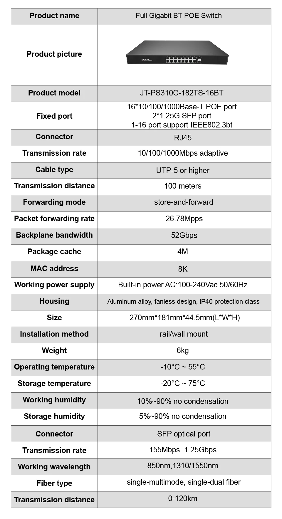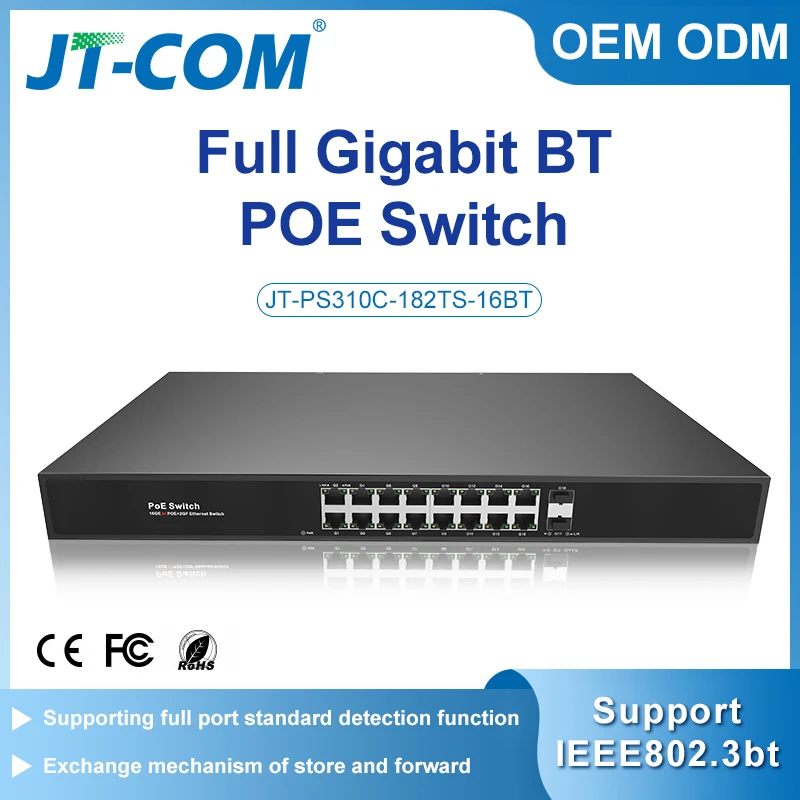 Comprar Interruptor PoE BT no gestionado con puertos de ranura SFP de 2x1000M y puertos PoE de 16x100/1000M