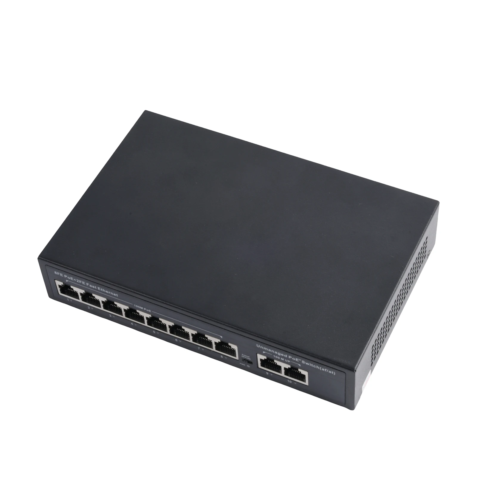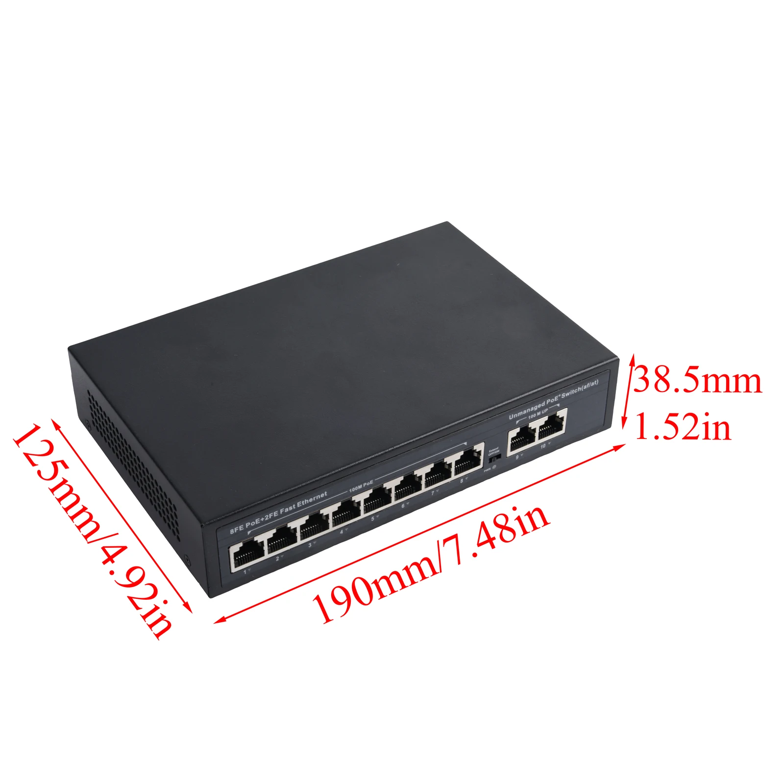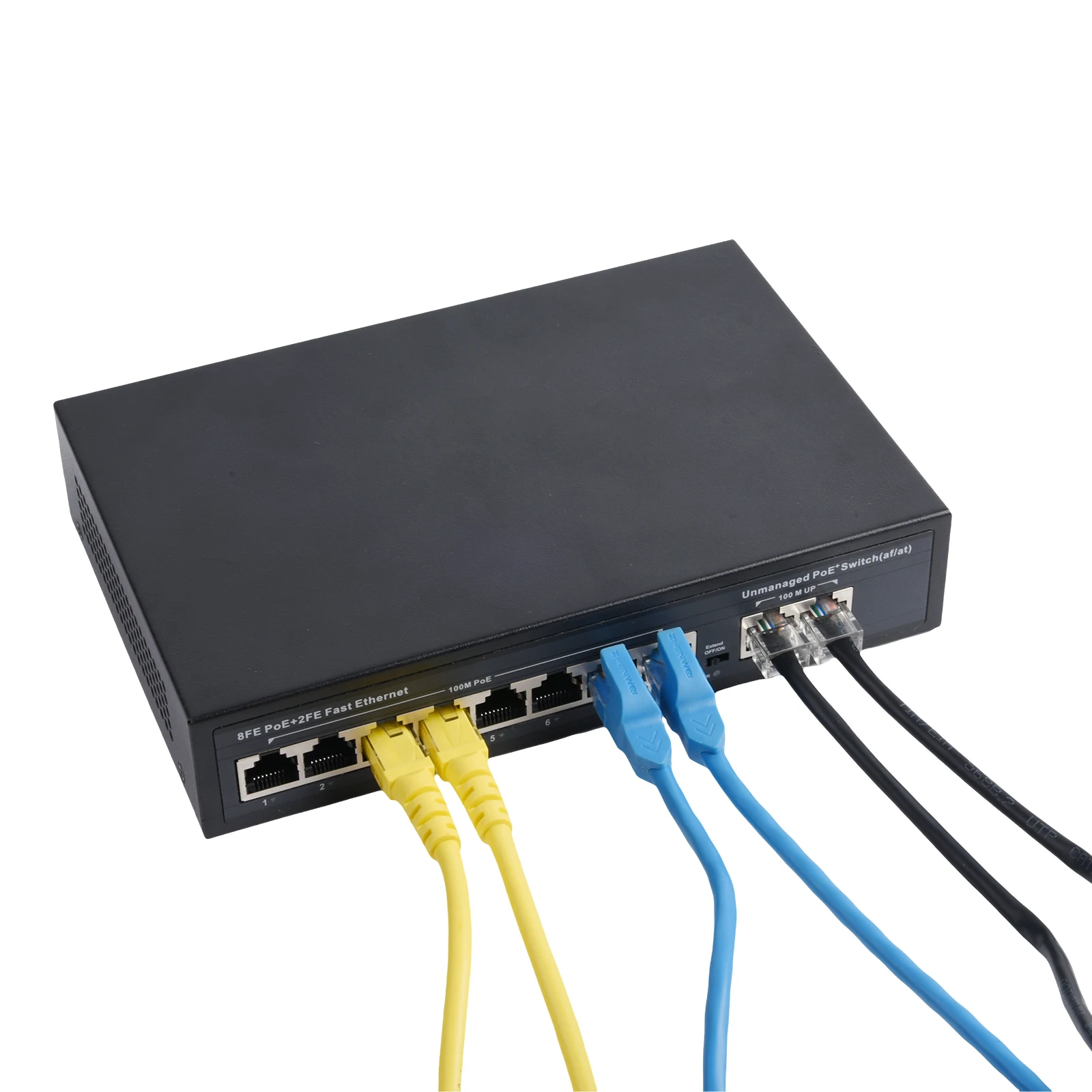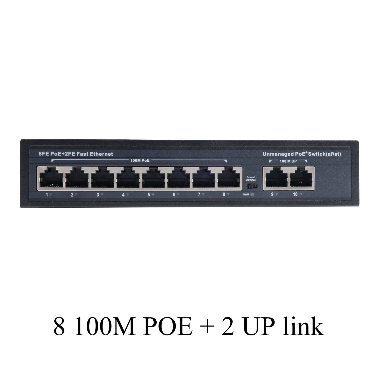 Conmutador POE estándar de 1/100Mbps, 8 puertos + 2 puertos de enlace ascendente, conmutador Ethernet, protección contra rayos para cámara IP, AP inalámbrico