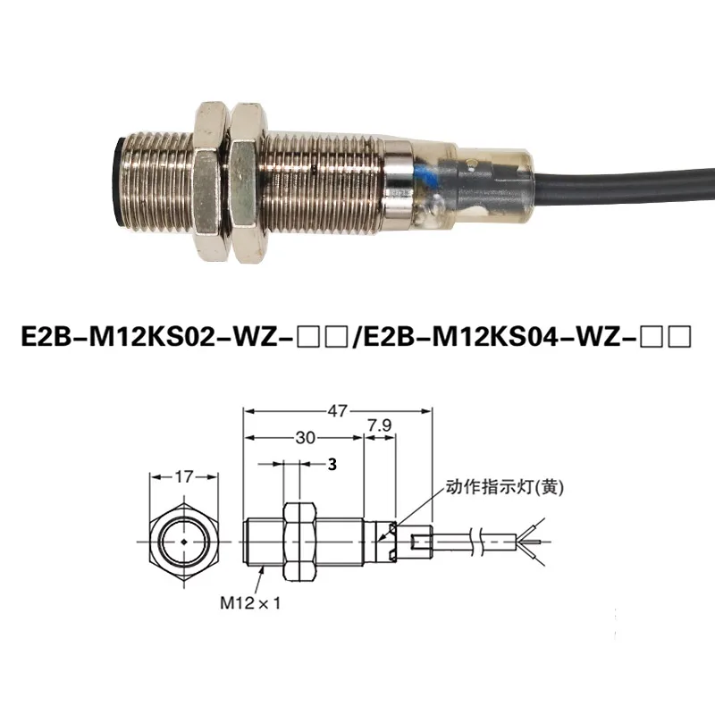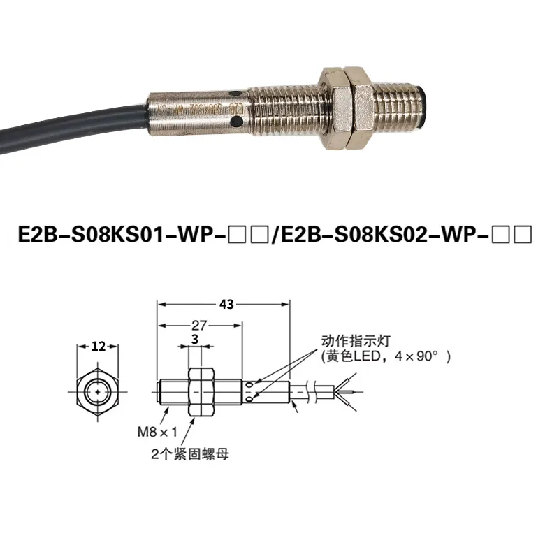 Interruptor de proximidad blindado M12 E2B-M12KS04-M1-B1/C1 E2B-M12KS04-WZ-B1/C1 NPN PNP conector tipo tira M8 E2B-M08KS02-WP-B1/C1