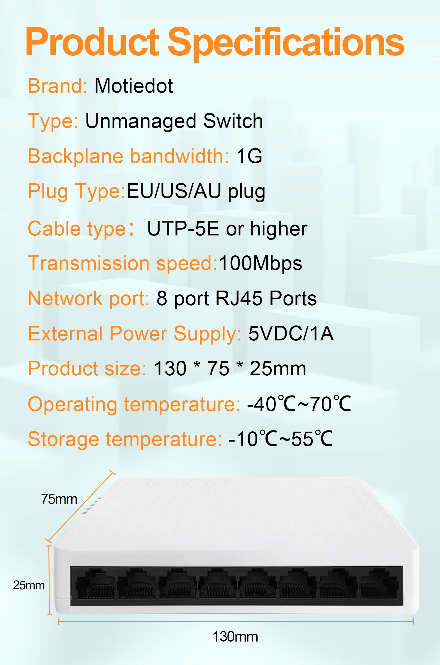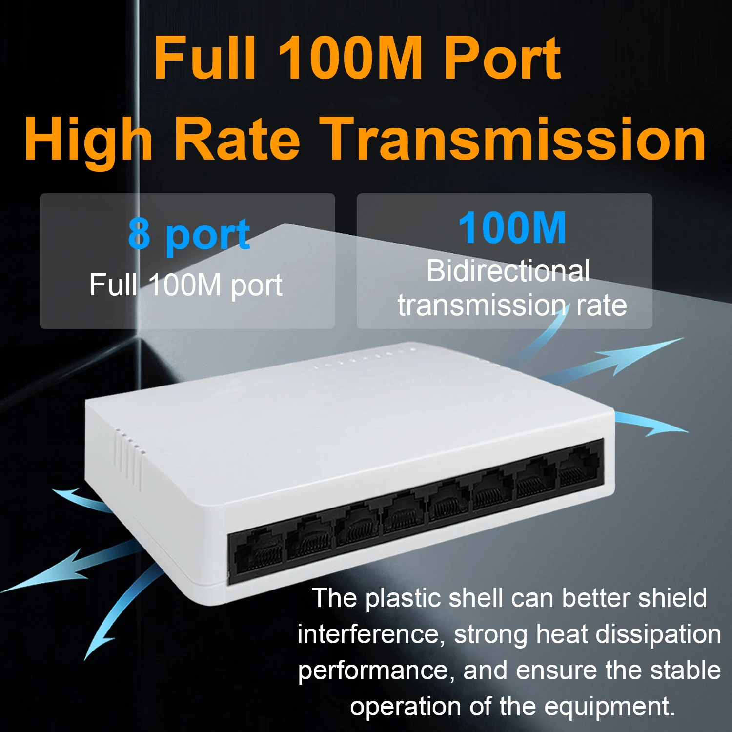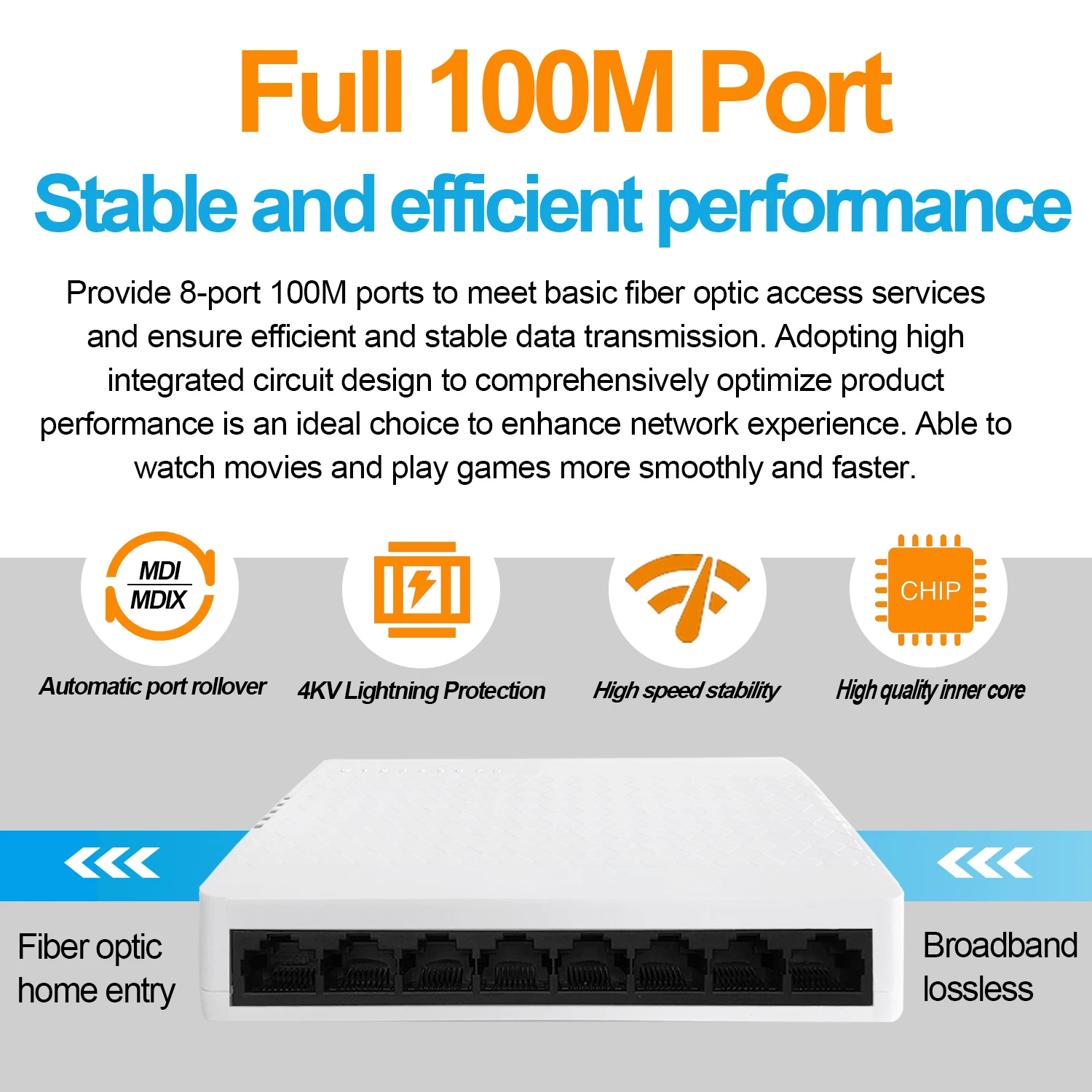 Comprar Interruptor de red de 8 puertos, Hub LAN RJ45 Ethernet no gestionado de 100Mbps para CCTV, FTTH, oficina y cámara