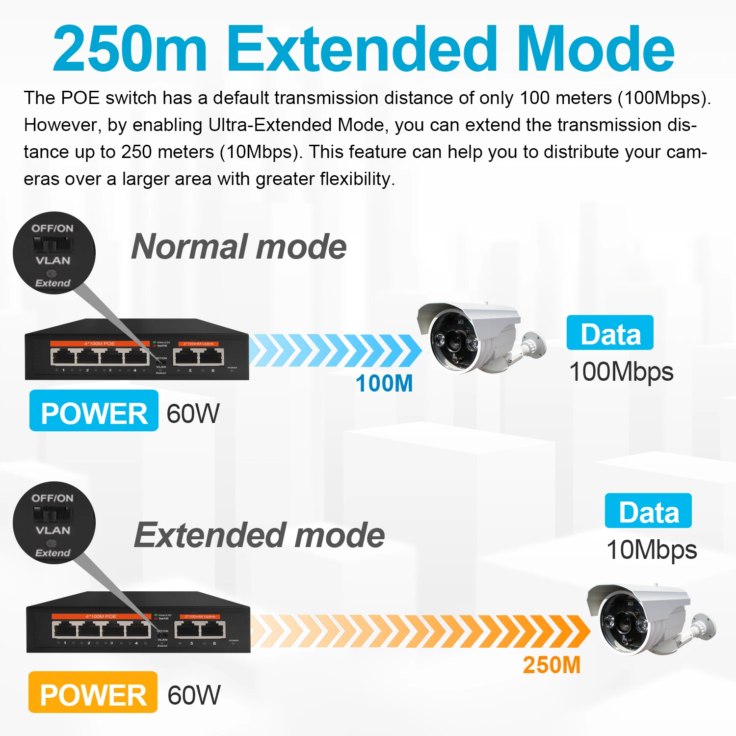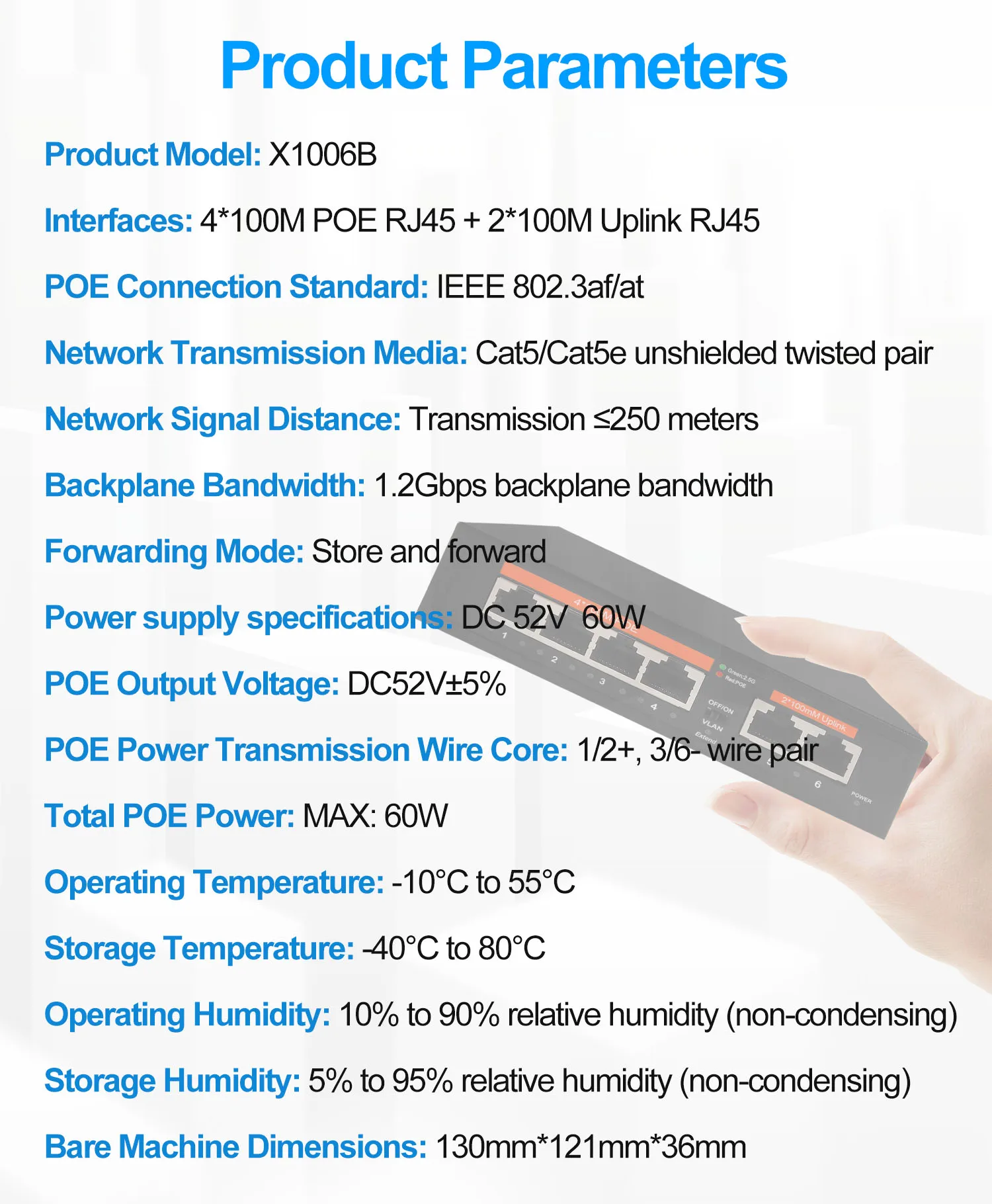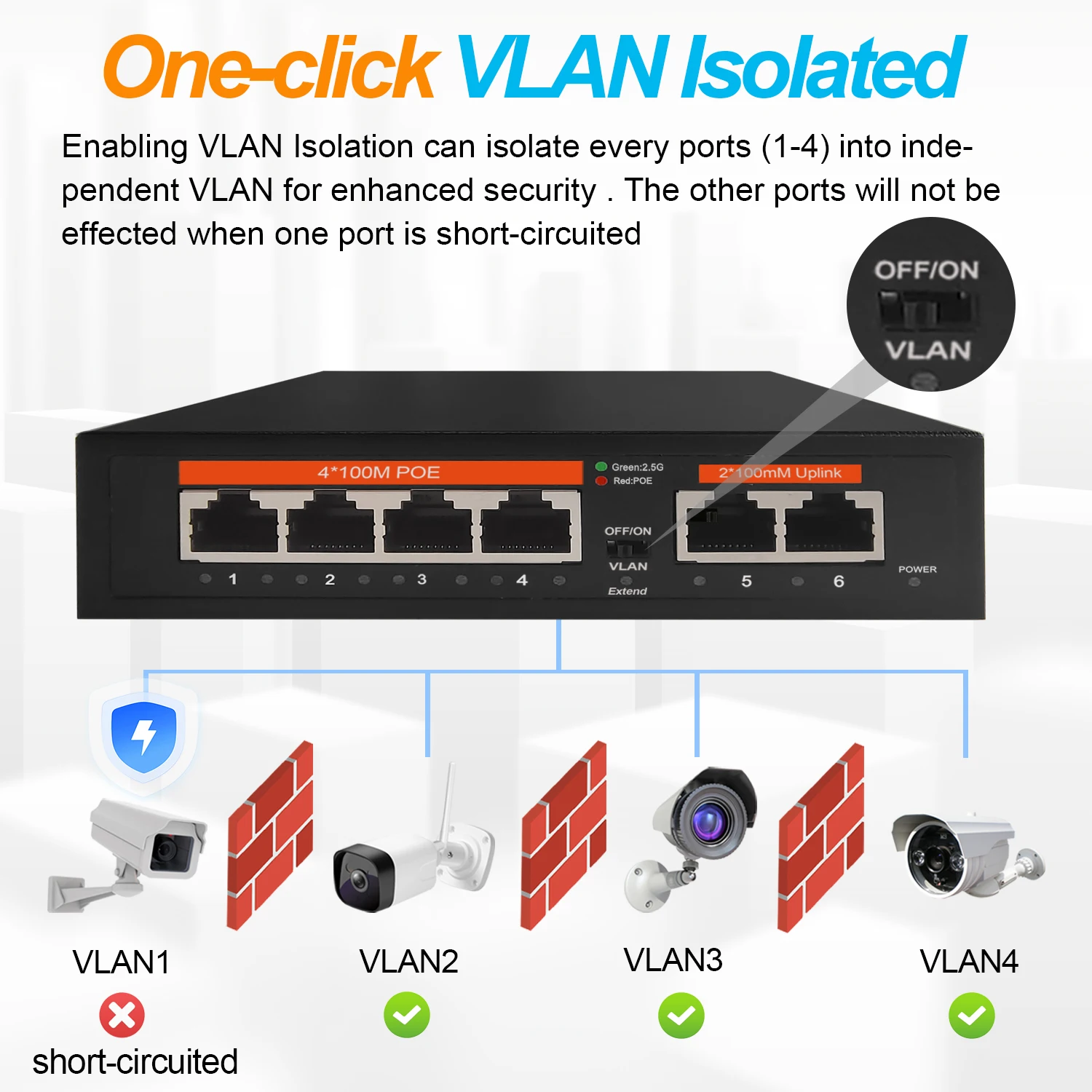 Interruptor de red Ethernet POE de 100Mbps, conmutador no gestionado de 65W, 4 puertos POE + 2 puertos RJ45, IEEE 802,3 af/at VLAN para enrutador Wifi/cámara/AP inalámbrico