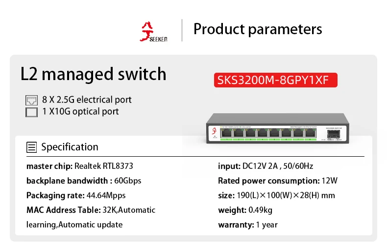 Comprar Interruptor de red gestionado L2 Simple, 2,5g, 100/1000 Mbps, RJ45, 8 puertos, 10Gbps, SFP + Slot, plug and play Hub, divisor de Internet