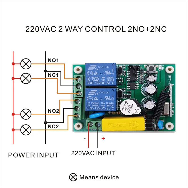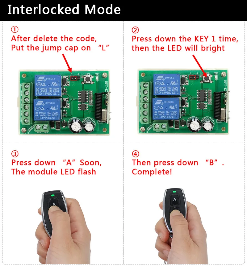 Comprar Interruptor RF remoto inalámbrico 433Mhz 12V dc controlador relé 24VDC módulo receptor 220VAC control de vía 2NO + 2NC