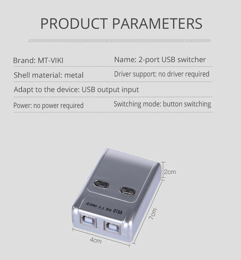 Comprar Interruptor Selector automático USB 2,0 para impresora, controlador Flash de 2 puertos, conmutador para compartir ratón, MT-SW221-CH DE Control DE Software Hotkey