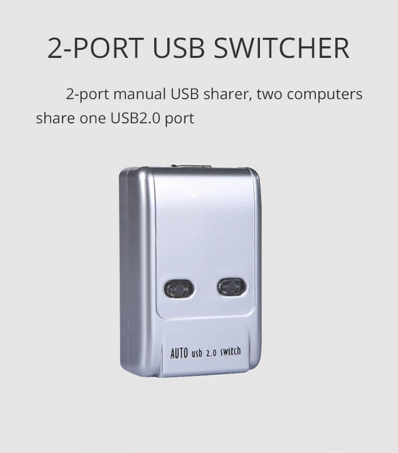 2 puertos Auto USB 2,0 Selector Switch Impresora Flash Driver Mouse Sharing Switcher Hotkey Control de software