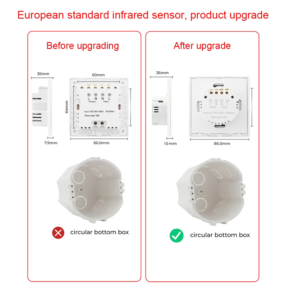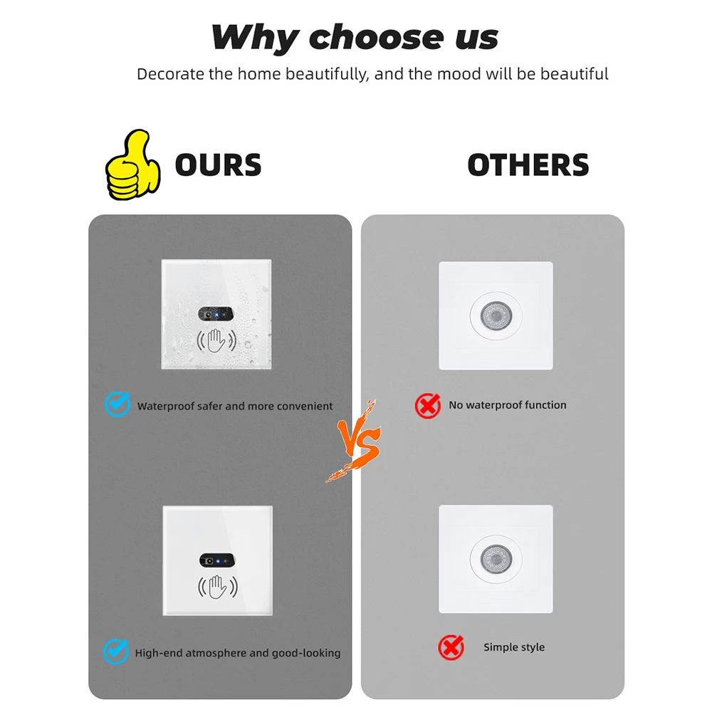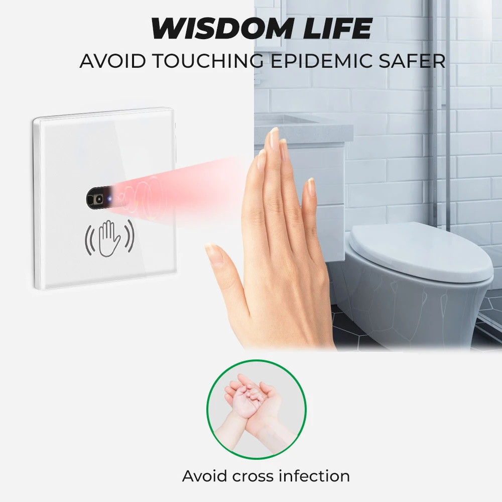 Comprar Interruptor de Sensor infrarrojo de luz de pared inteligente para el hogar, sin necesidad de Panel de pantalla de vidrio táctil, encendido y apagado, energía eléctrica de 110V, 220V, 10A, EE. UU., UE