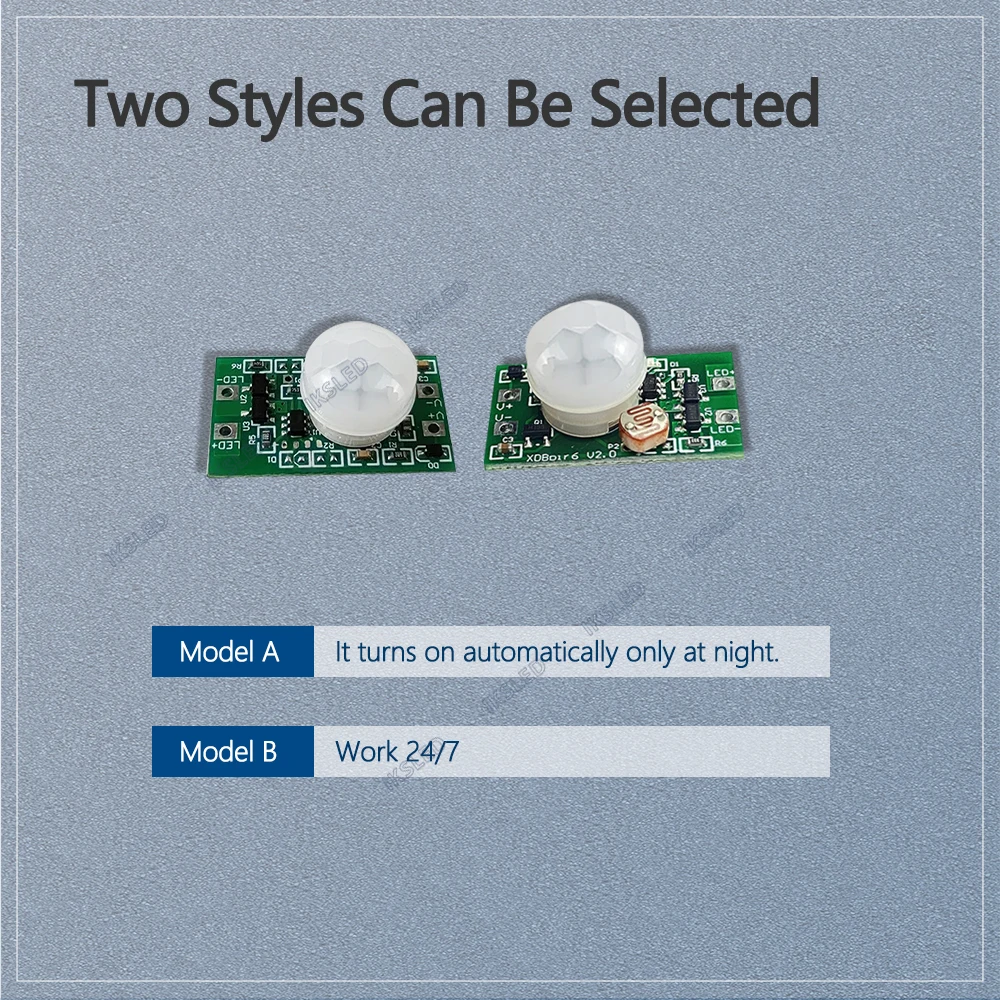 7.Personalización:Distancia de detección y tiempo de retardo ajustables (se aplica MOQ)