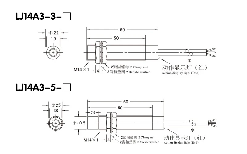 LJ14A3-3-Z/DX: CC de dos hilos, normalmente cerca de 14mm de diámetro; Distancia de detección de 3mm.