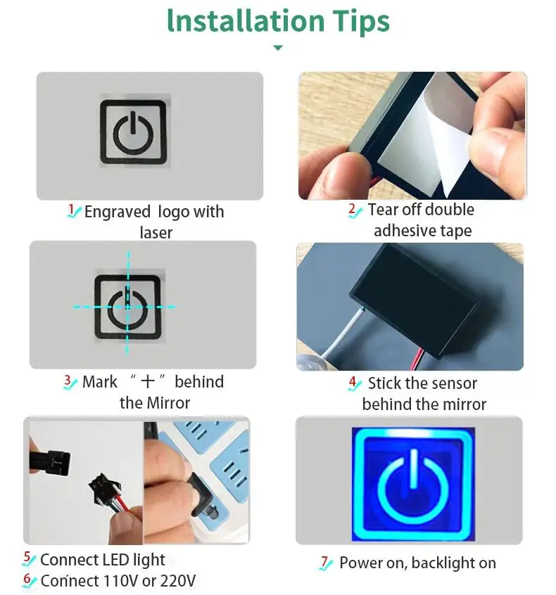 AC110-240V 1A interruptor de espejo de baño Sensor táctil para faro de espejo de luz LedEspecificaciones: