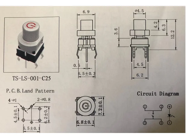 Fuerza de funcionamiento: V: 130 ± 50gf