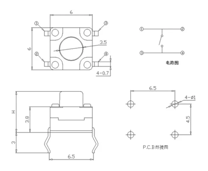 Interruptor táctil a prueba de agua, interruptor 6X6, 4 pines, 6*6*5MM/6MM/7MM/8MM/9MM/10MM