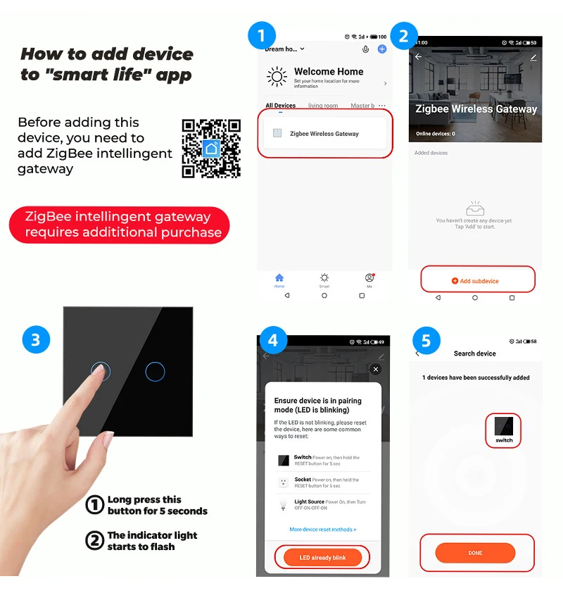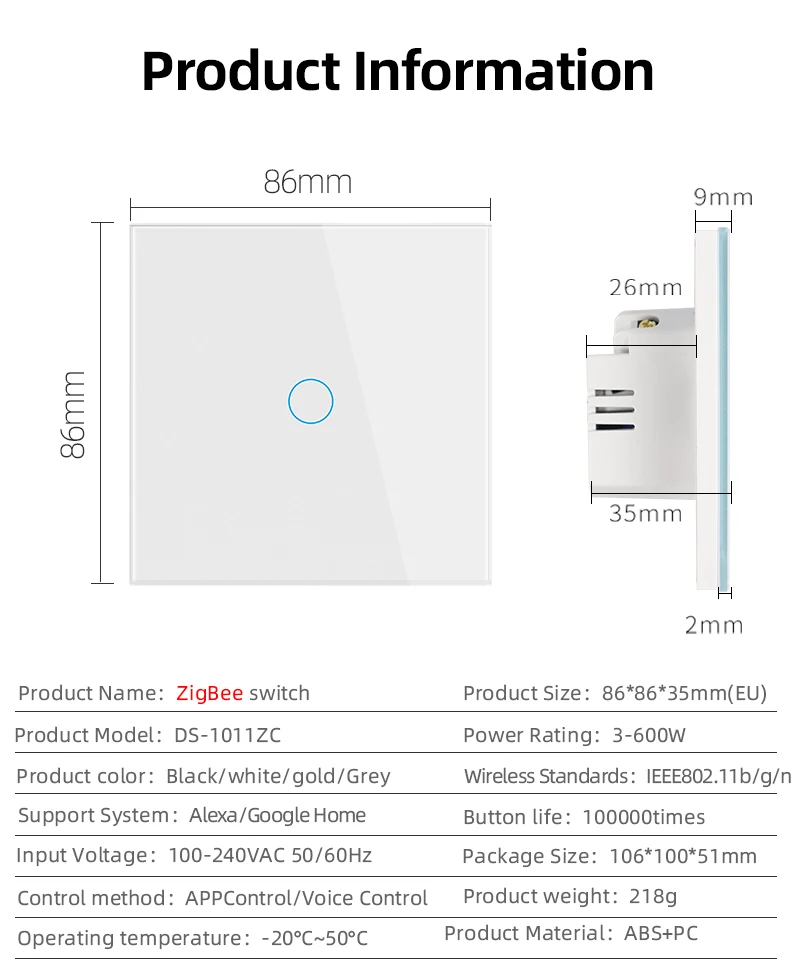 Comprar Interruptor táctil inteligente Tuya Zigbee, sin necesidad de condensador, neutro, funciona con Alexa, Google Home, Smart Life