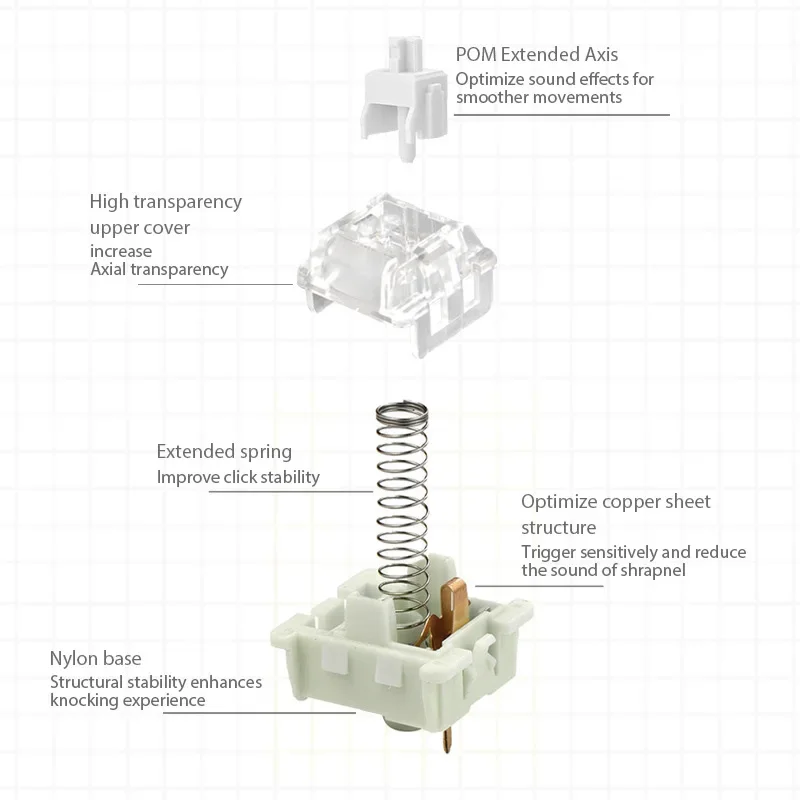 Comprar Interruptor de teclado KTT Kang blanco V3, teclado mecánico lineal personalizado de 3 pines 45g, interruptores Cherry MX, interruptor de teclado para juegos RGB SMD