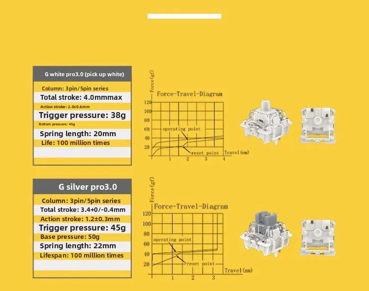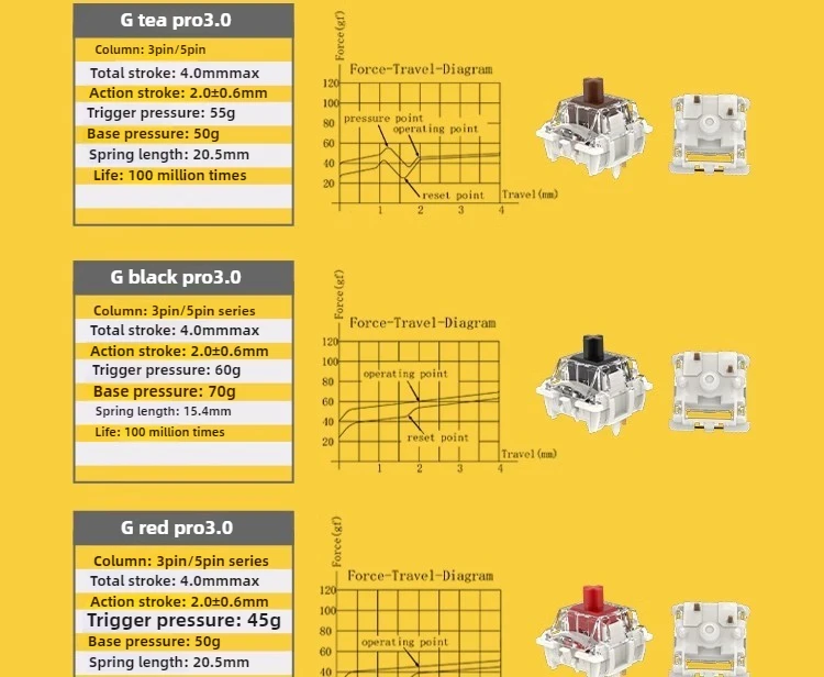 Interruptor de teclado mecánico Gateron eje de teclado mecánico eje de intercambio en caliente cuerpo G rojo amarillo plata PRO3.0