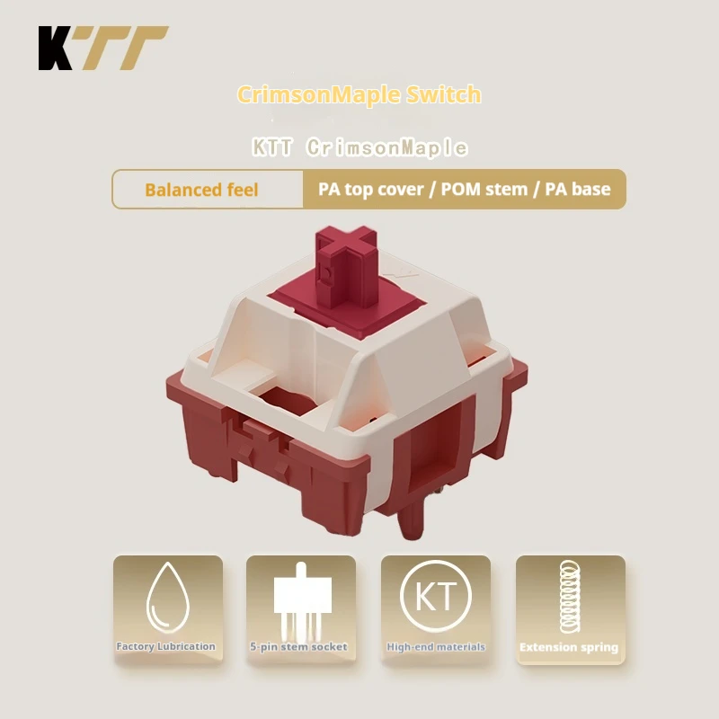 Interruptor de teclado mecánico KTT CrimsonMaple, sensación equilibrada, tecla completa, intercambiable en caliente, para juegos y teclado de oficina para ordenadores
