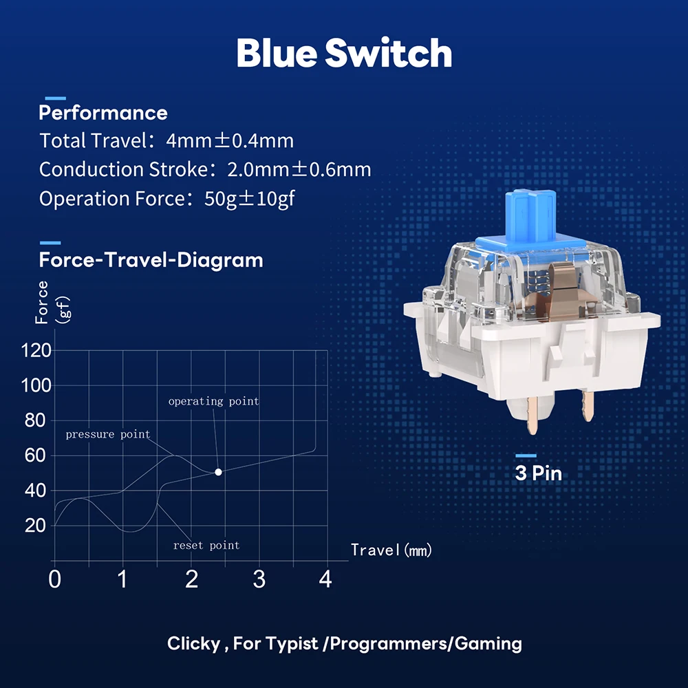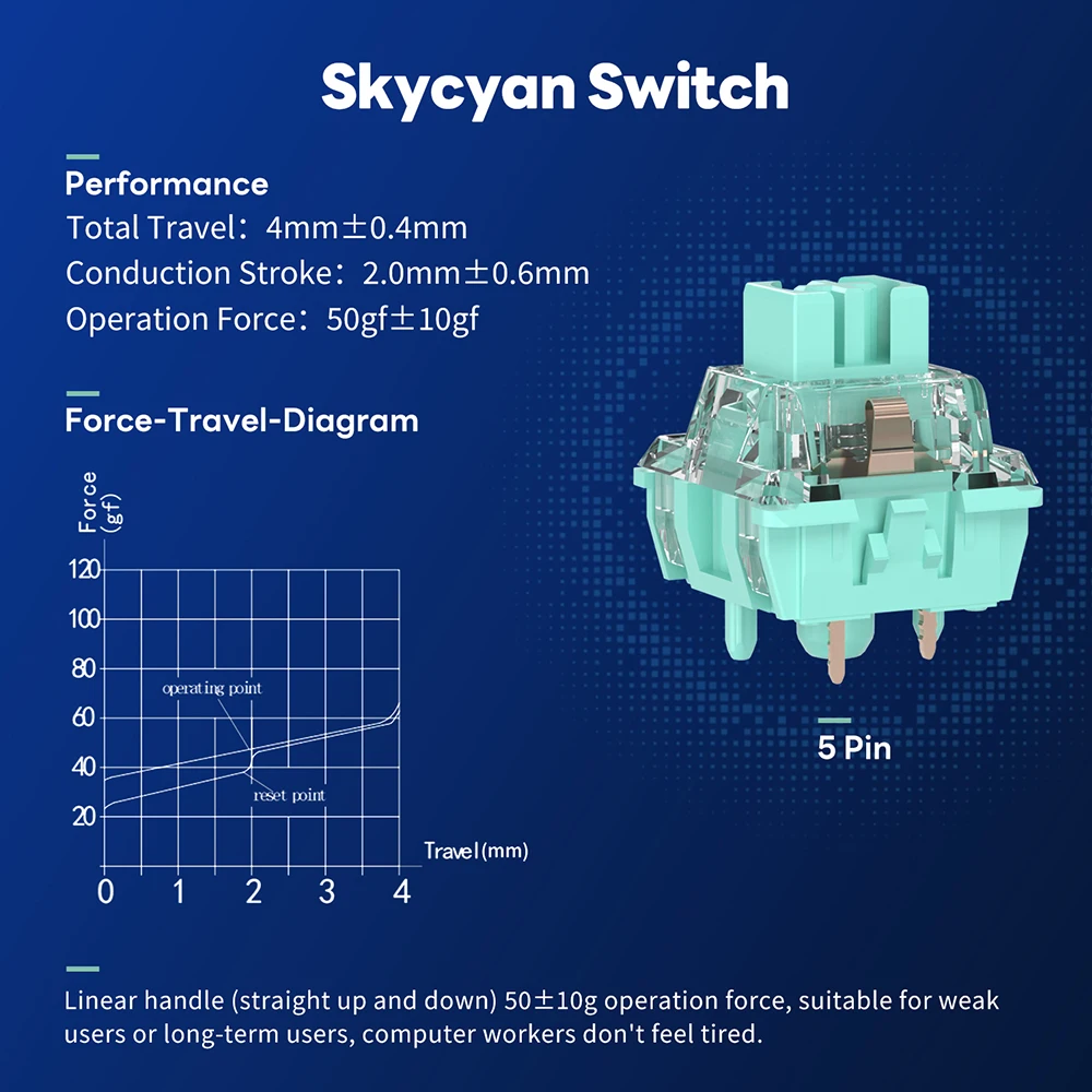 Comprar Interruptor de teclado mecánico RK 5, 3 pines, táctil lineal, silencioso, RGB, MX, azul, rojo, marrón, Skycyan, para teclados para juegos