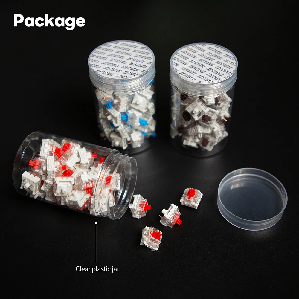 Me gusta que los interruptores vinieron en recipientes de plástico. No sólo son fáciles de almacenar sino que también sirven como una buena protección durante el parto. Los interruptores en sí son típicos de RK.
